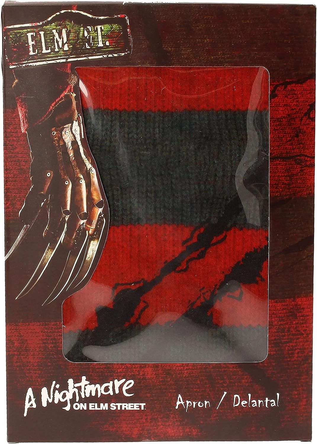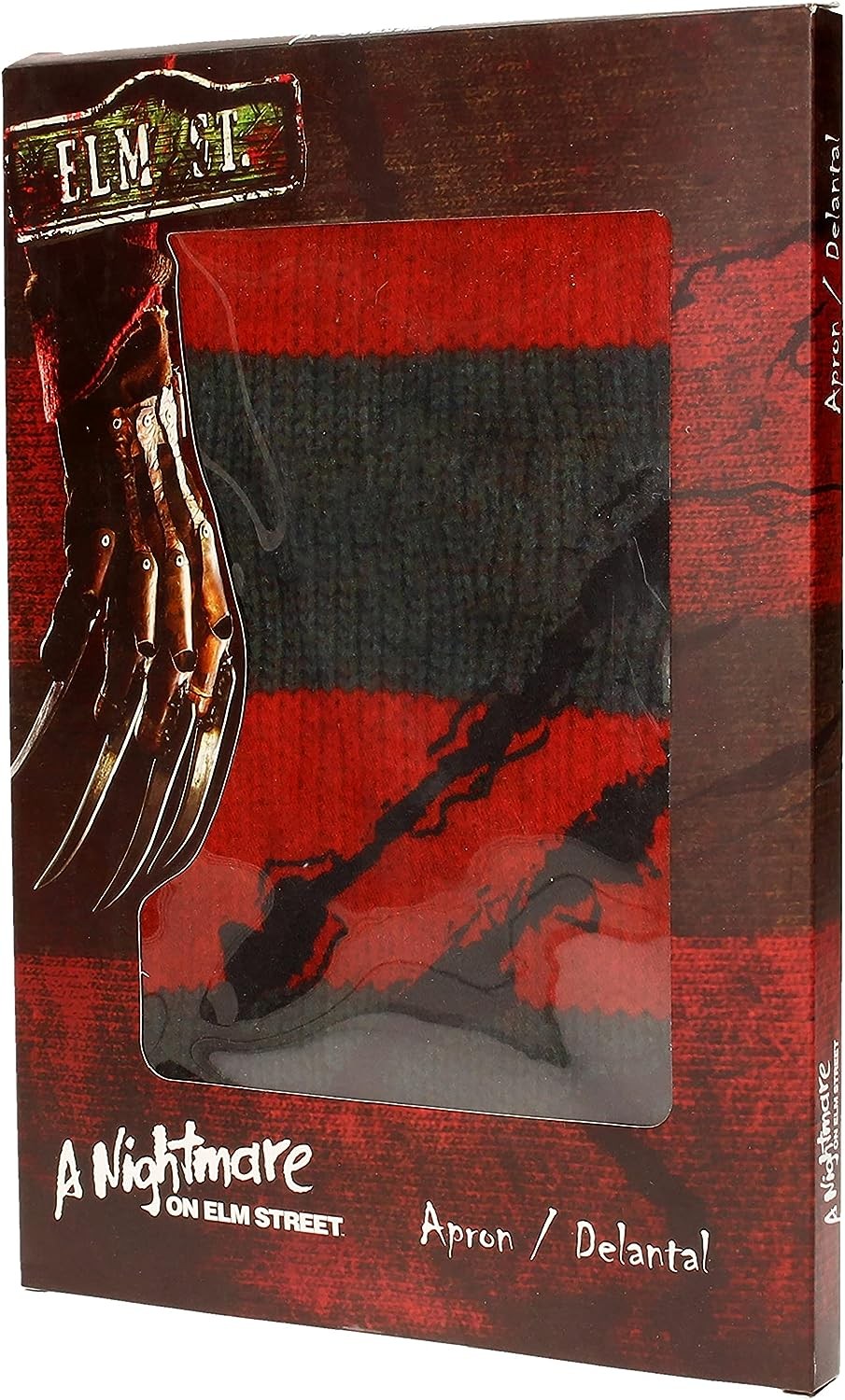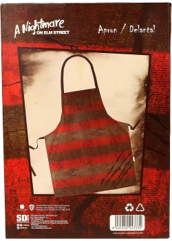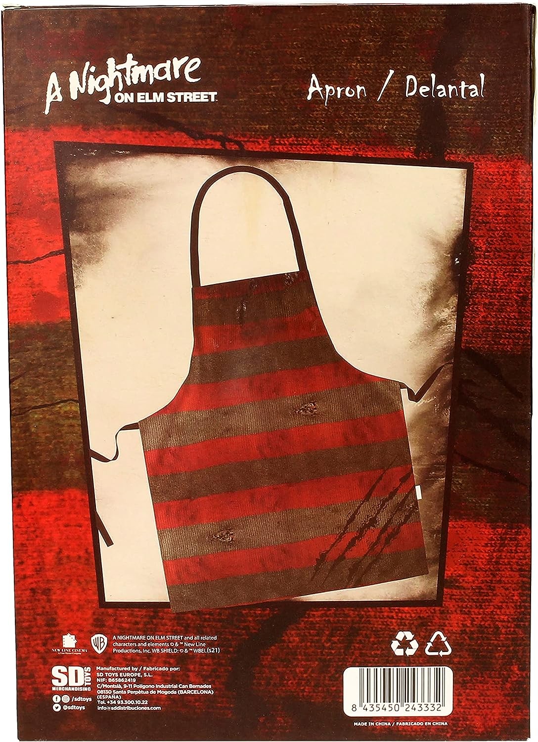 SD Toys se ha adentrado en el mundo de las pesadillas de Freddy Krueger y desde allí te trae este exclusivo delantal de licencia oficial. Ahora podrás cocinar llevando un delantal decorado con las icónicas rayas rojas y negras desgastadas del jersey de Freddy, el sobrenatural asesino de la saga “Pesadilla en Elm Street”. Está hecho de poliéster.