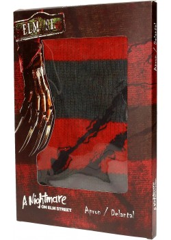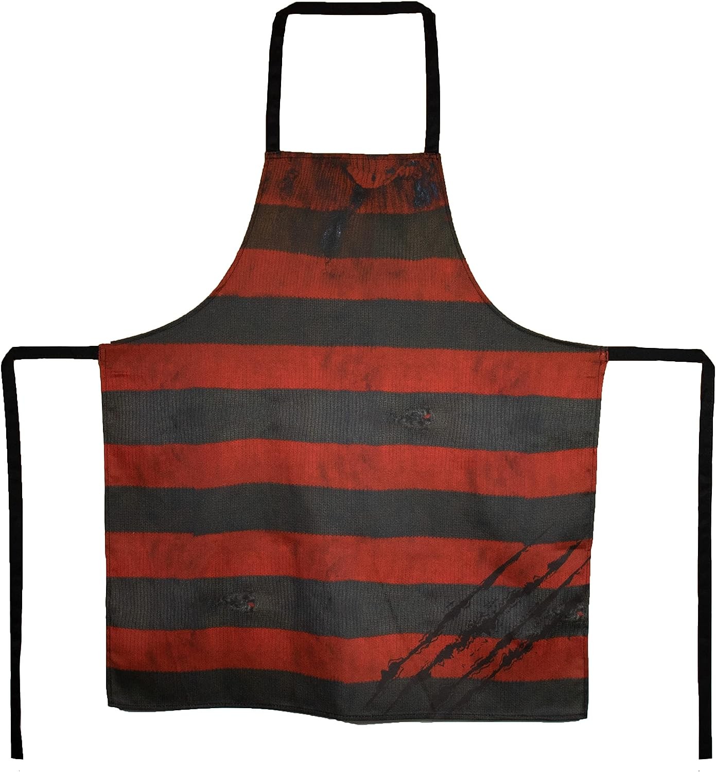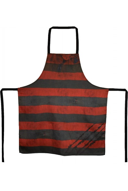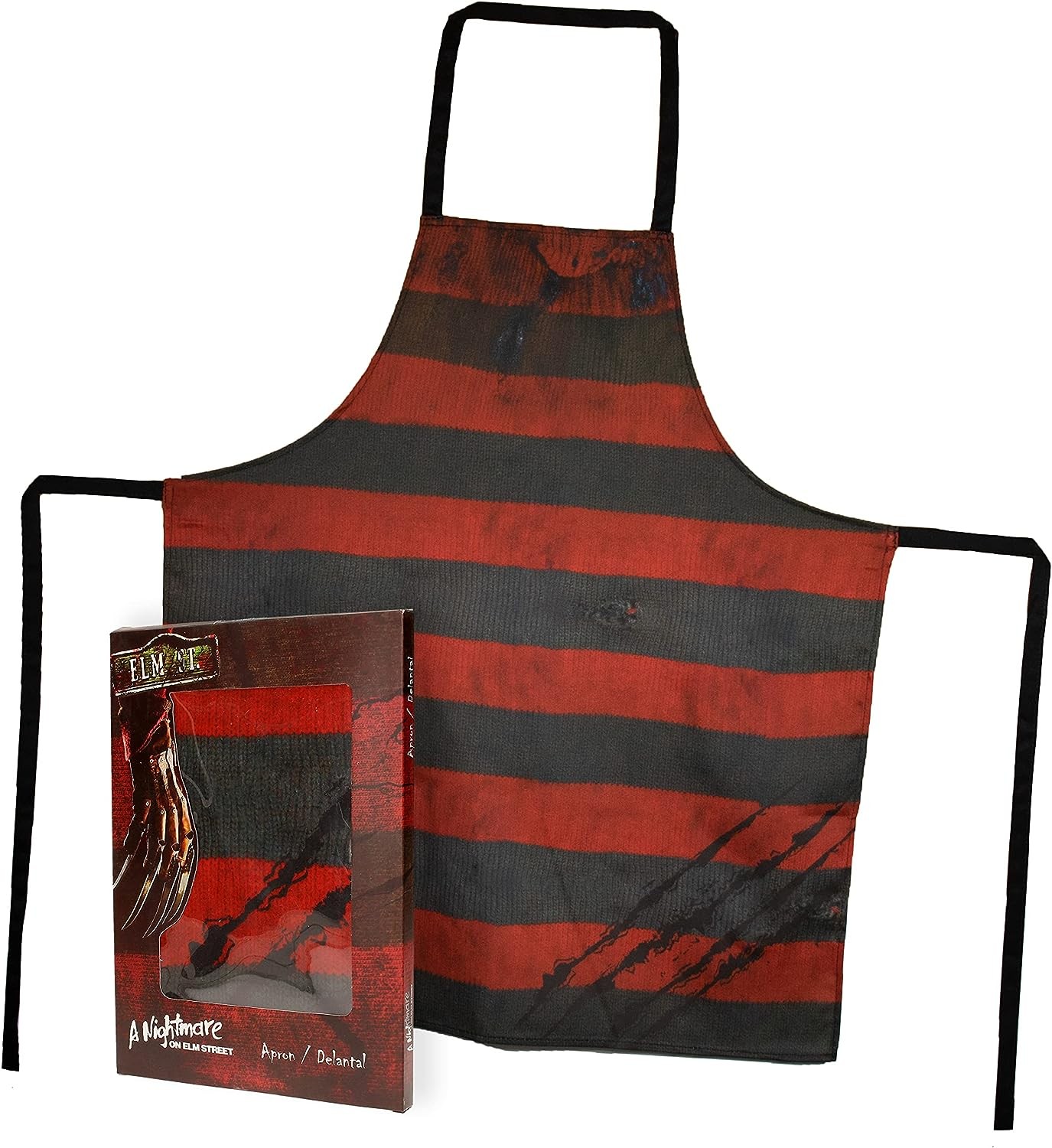 SD Toys se ha adentrado en el mundo de las pesadillas de Freddy Krueger y desde allí te trae este exclusivo delantal de licencia oficial. Ahora podrás cocinar llevando un delantal decorado con las icónicas rayas rojas y negras desgastadas del jersey de Freddy, el sobrenatural asesino de la saga “Pesadilla en Elm Street”. Está hecho de poliéster.