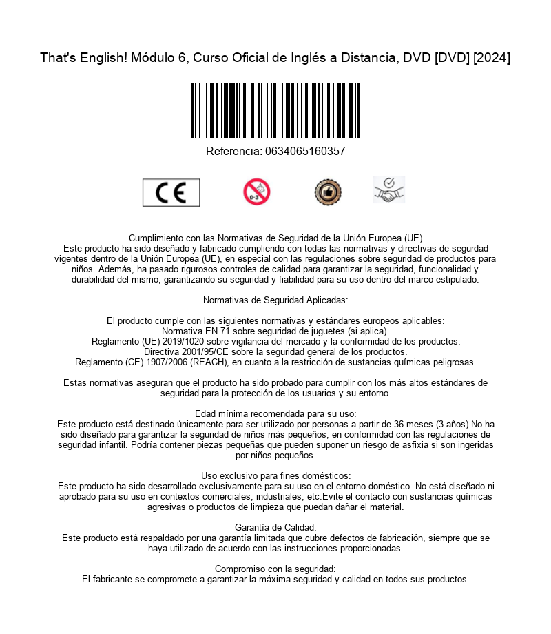 Descubre el Módulo 6 de 'That's English!', el curso oficial de inglés a distancia respaldado por el Ministerio de Educación, Cultura y Deporte de España. Este DVD educativo forma parte de un programa integral diseñado para aprender inglés desde la comodidad de tu hogar. Con formato PAL y sonido Dolby Digital estéreo multizona, ofrece una experiencia de aprendizaje inmersiva y de alta calidad. El material está especialmente estructurado para estudiantes que desean mejorar su nivel de inglés de manera sistemática y progresiva. Incluye lecciones prácticas, ejercicios interactivos y situaciones cotidianas que te ayudarán a desarrollar tus habilidades lingüísticas. Este recurso audiovisual complementa perfectamente el material didáctico del curso, permitiéndote practicar la pronunciación y comprensión auditiva. Compatible con reproductores DVD de la región 2 (Europa). Producido en 2013 por CIDEAD (Centro para la Innovación y Desarrollo de la Educación a Distancia).