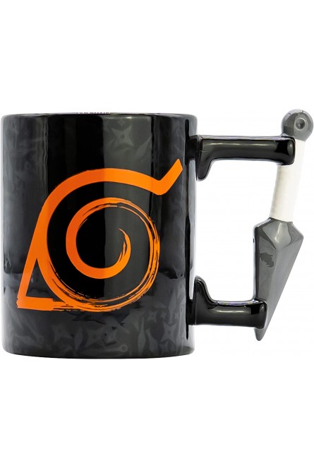 Naruto Shippuden es la serie de manga y anime que cuenta las aventuras del joven Naruto, ninja que tiene en su interior al Zorro de Nueve Colas. Abystyle te trae la espectacular taza 3D que tiene un mango que parece una de las armas arrojadizas de Naruto. Además, es de color negro y naranja y tiene el símbolo del Kunai Konoha en su superficie. Viene en una caja transparente de exposición y tiene una capacidad de nada menos que 500 mls. Está hecha de cerámica de gran calidad y no es apta para lavavajillas ni microondas. Iníciate en el camino del ninja y coge fuerzas cada mañana para tan duro destino con esta fantástica taza que parece salida del anime creado por Masashi Kishimoto.