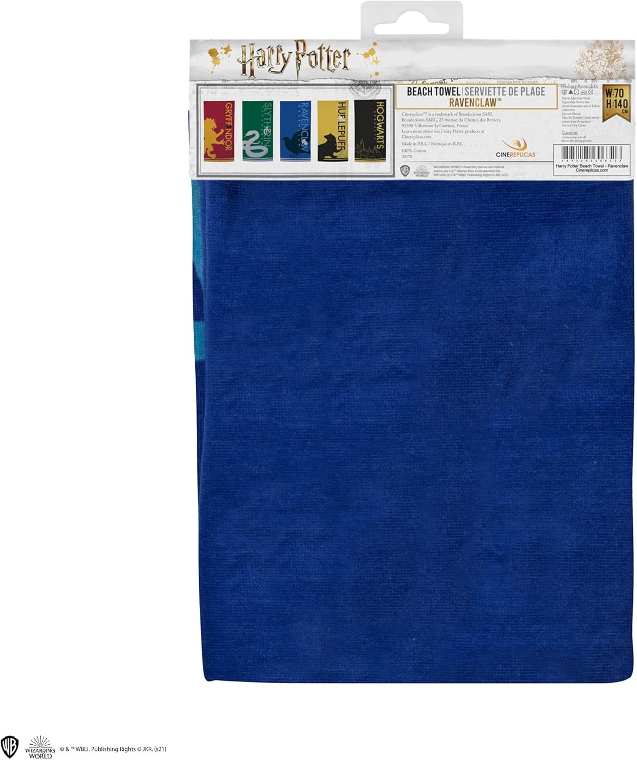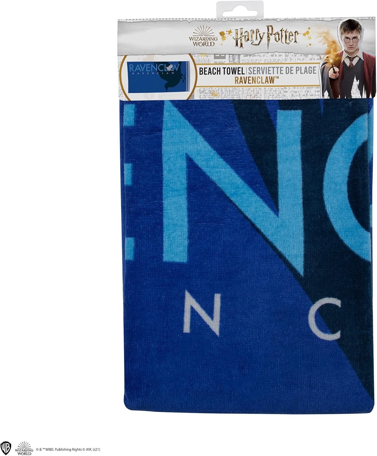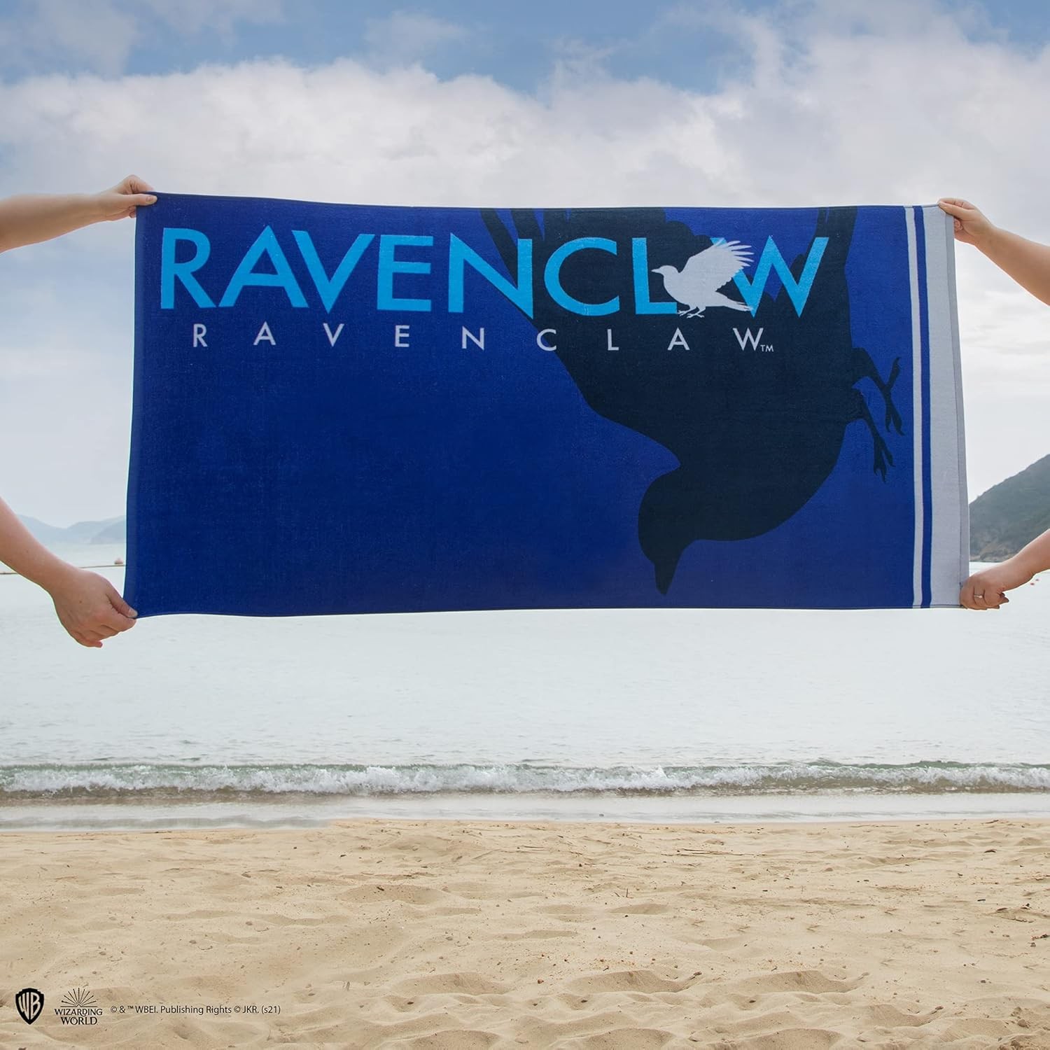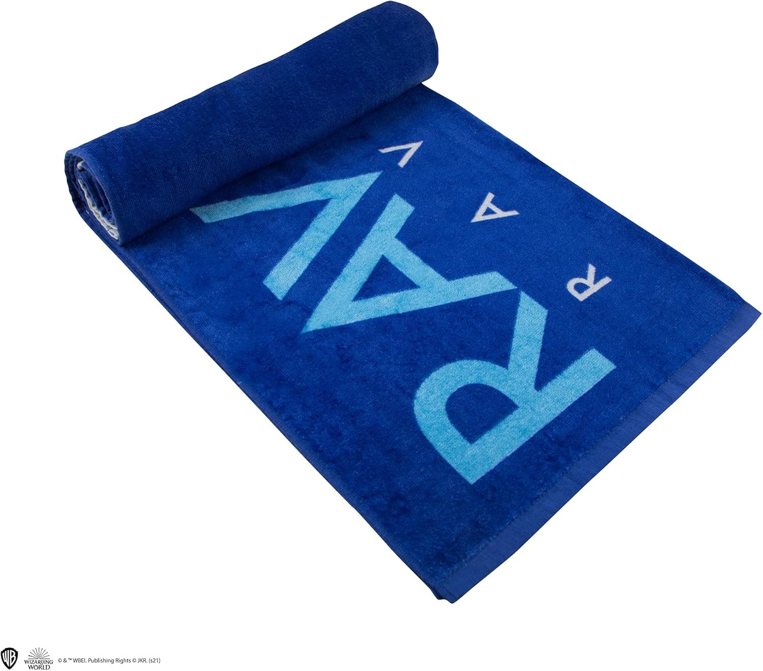 Las cuatro casas de Hogwarts son lugares de aprendizaje, comunidad… y a veces, lugares ideales para pasar también tus vacaciones. Ve a la playa o a la piscina a la última moda del Wizarding World con esta fantástica toalla de Ravenclaw, la casa de color azul del famoso colegio. Está hecha de algodón 100% y tiene la silueta del águila, la mascota de esta casa a la que pertenecía, por ejemplo, Luna Lovegood. Es un producto oficial del Wizarding World y Harry Potter y ha sido creada por Cineréplicas.