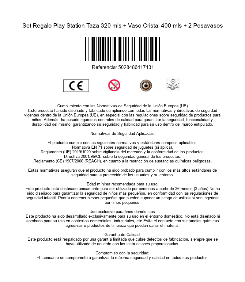 Los fans de la Play Station, el sistema de Sony, están de enhorabuena. GB Eye ha tirado de nuestra nostalgia y nos ofrece una caja de regalo de taza, vaso y dos posavasos inspirados por la primera consola Play Station. La propia caja premium en la que viene tiene aspecto de Play y todos los elementos de su interior están ilustrados con los símbolos de los controles del Dual Shock (mando) y el logo de Play Station. El vaso de cristal tiene una capacidad de 400 mls y la taza de cerámica de 320 mls. No es apto para lavavajillas ni microondas, ¡pero si para beber y disfrutar como un auténtico jugón!