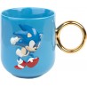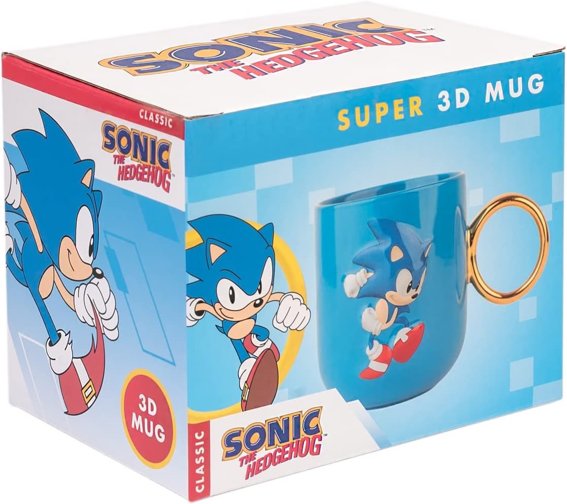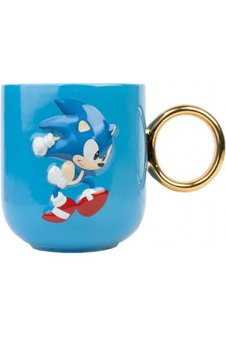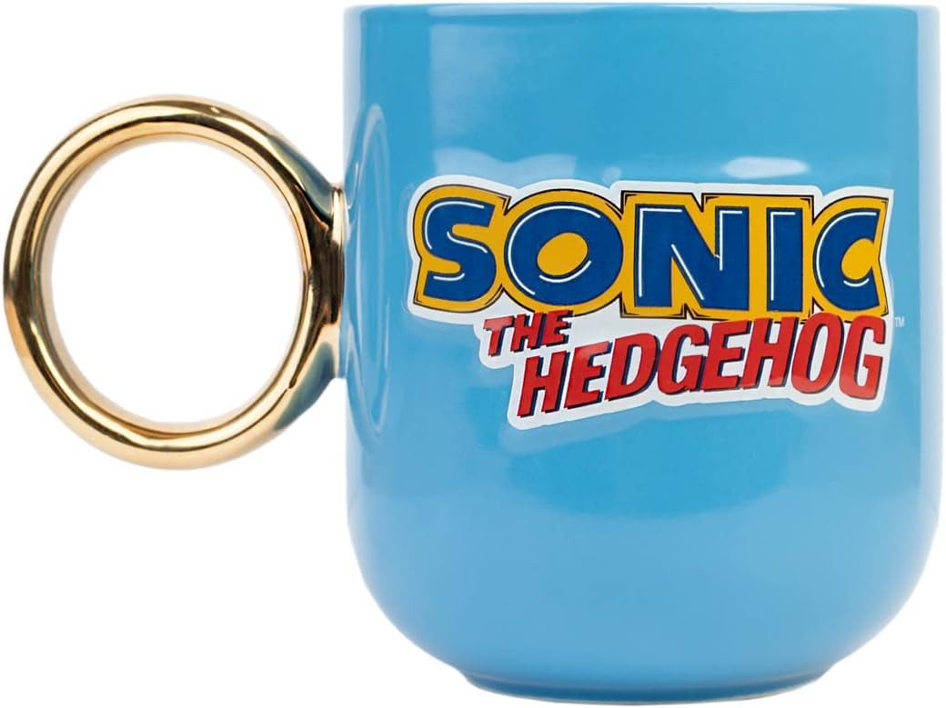 Esta taza de Sonic con asa en forma de anillo dorado de efecto brillante y una capacidad de 350 mls es una pieza de colección para los fanáticos del erizo azul. Con un diseño inspirado en el famoso erizo, esta taza agrega un toque de nostalgia a tus bebidas favoritas mientras rinde homenaje a los videojuegos clásicos de Sega. Perfecta para revivir la aventura. Está hecha de cerámica y no es apta para lavavajillas ni microondas.