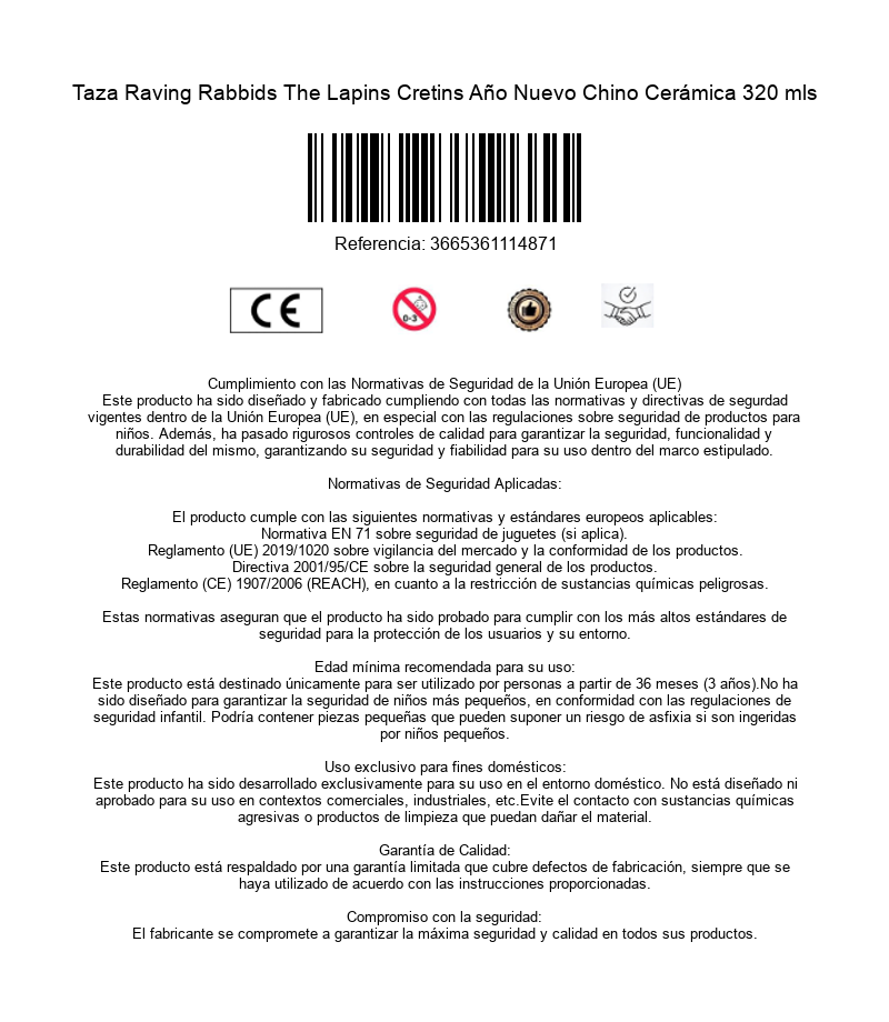Taza Raving Rabbids The Lapins Cretins Año Nuevo Chino Cerámica 320 mls