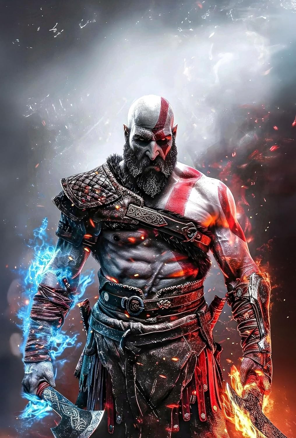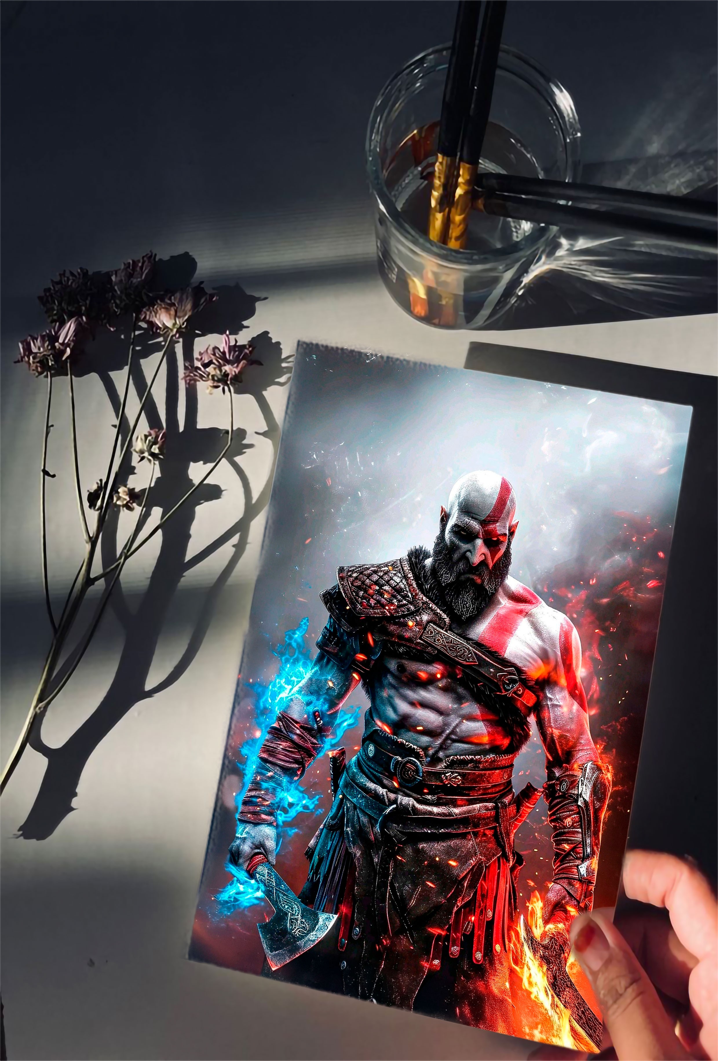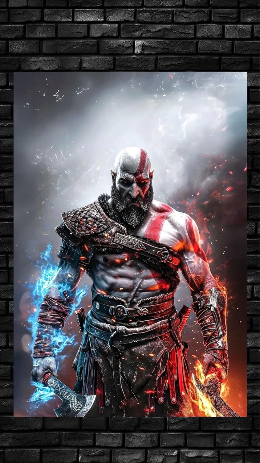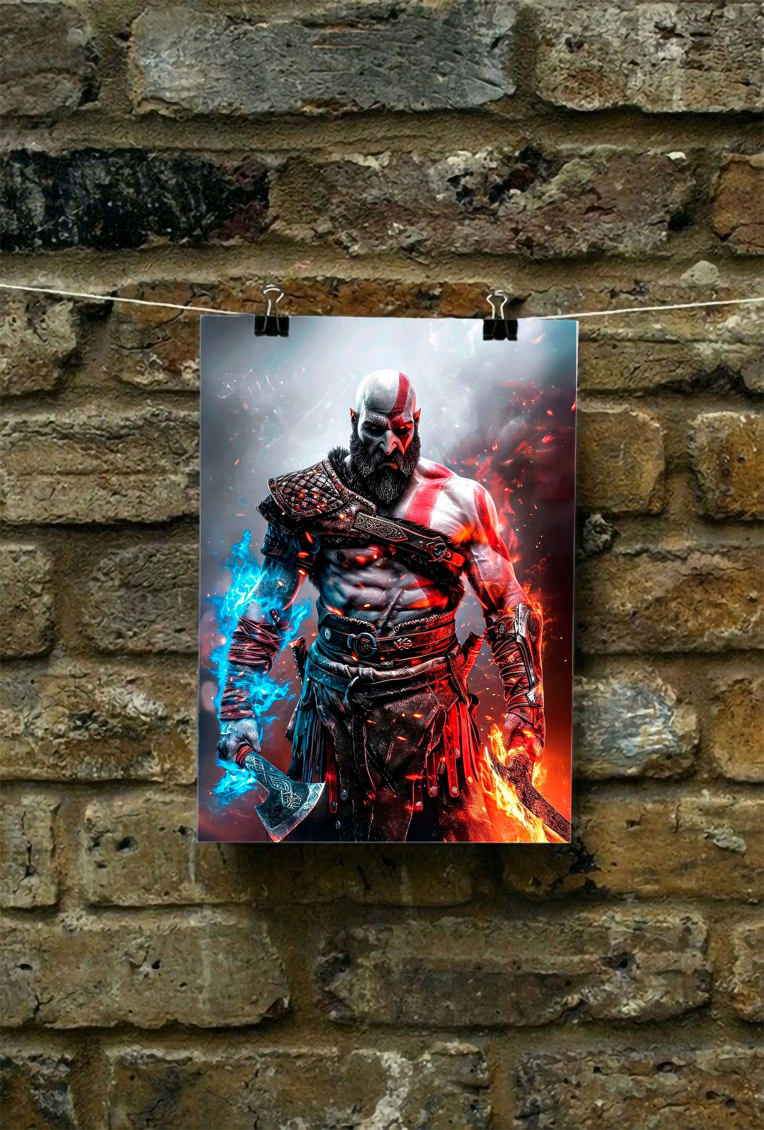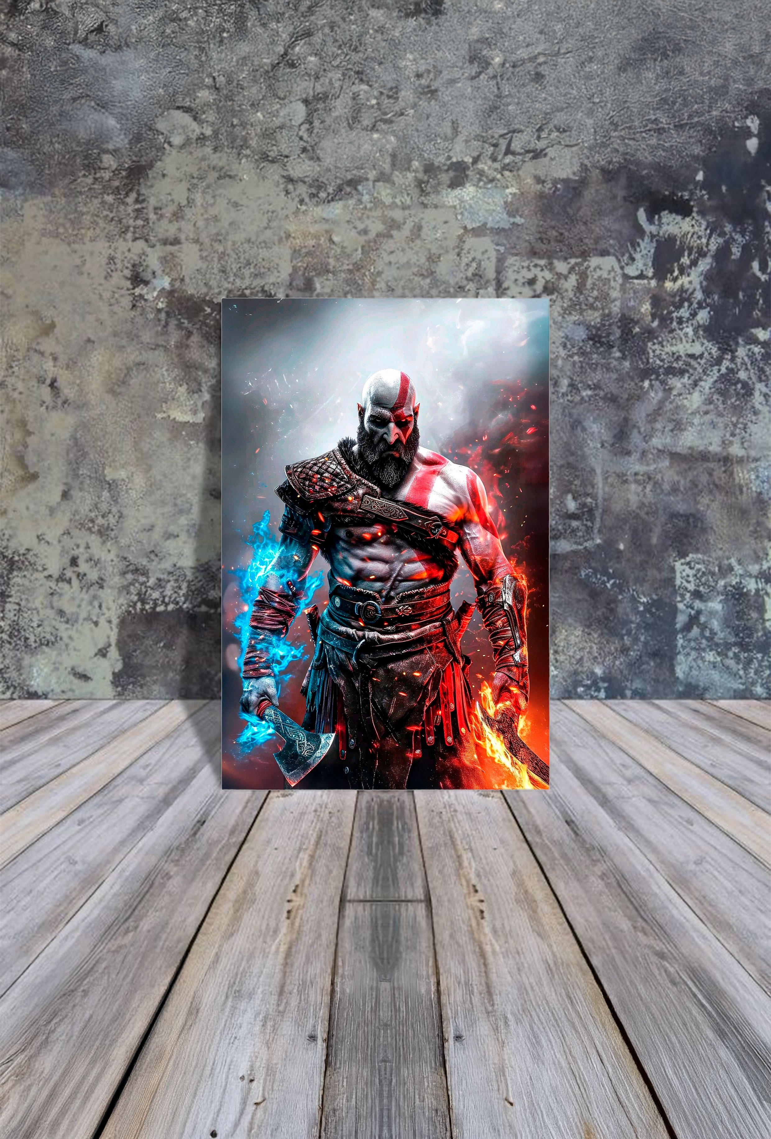 Kratos es un guerrero espartano conocido por su fuerza brutal, su ira descontrolada y su tragico pasado, siendo el protagonista de la saga God Of Ware y tu el protagonista con tu Póster metálico