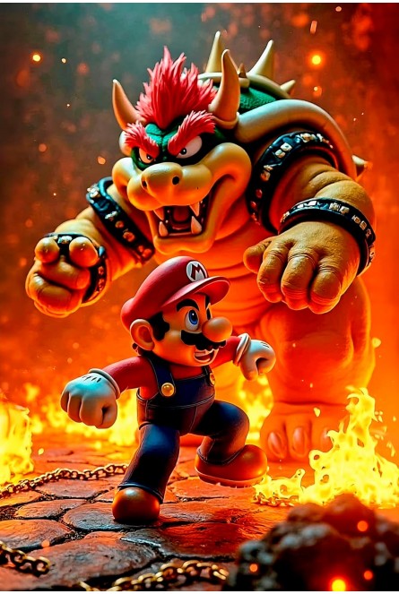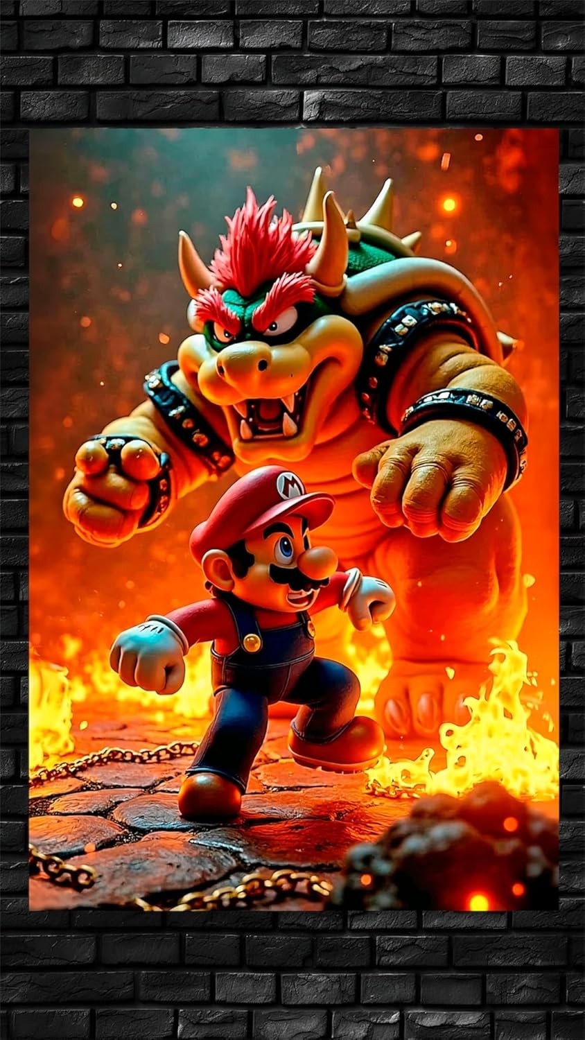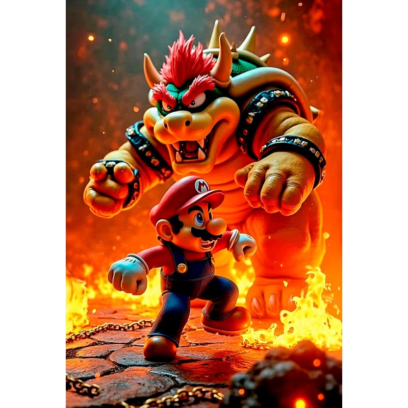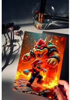 Póster Premium: Mario vs. Bowser en aluminio brillante Te presentamos una pieza exclusiva inspirada en la épica batalla entre Mario y Bowser, elaborada en aluminio de alta calidad con acabado brillante y pulido. Cada contorno y expresión cobra vida con un lustre impecable y duradero. Perfecto para coleccionistas y fans exigentes que buscan arte elegante con temática icónica. Eleva tu espacio con estilo y nostalgia. Disponible ahora.
