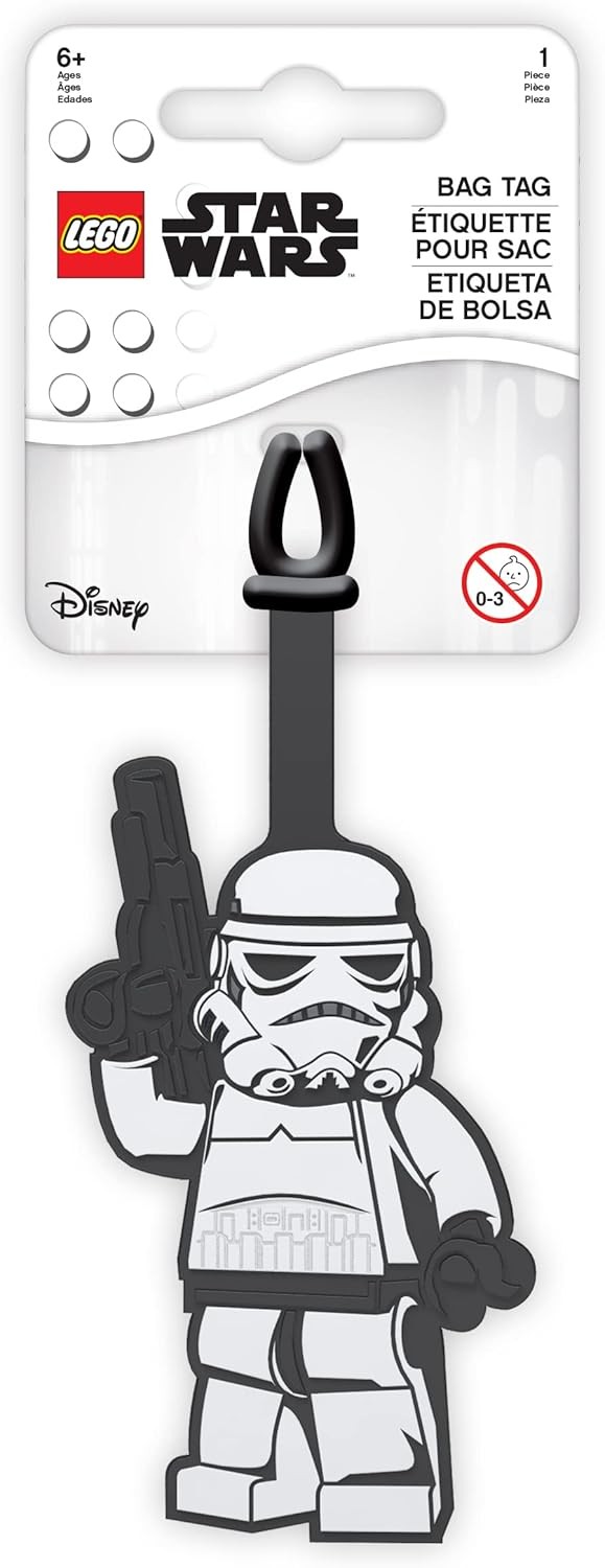 Que un stormtrooper cuide de tu equipaje con esta etiqueta de bolsa en versión LEGO. Con su relieve en 3D, le dará un toque único a tu mochila o maleta, y además cuenta con espacio en la parte trasera para escribir tu nombre o datos importantes (porque perder tus cosas no está en los planes del Imperio). Eso sí, esperamos que apunte mejor cuidando tu maleta que con un bláster.