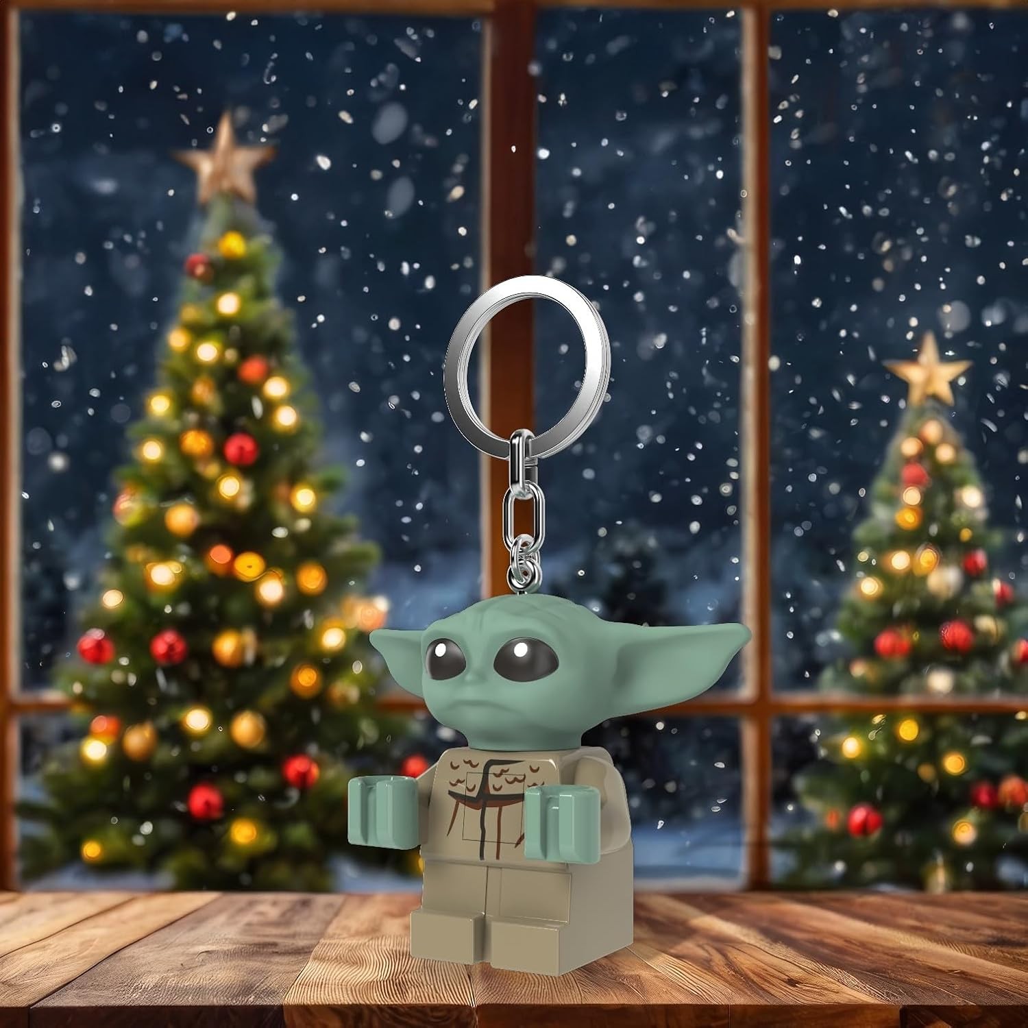 Ilumina tus aventuras con este llavero de Grogu en versión LEGO. Además de acompañarte con su ternura galáctica, tiene una función especial: aprieta su pecho y se encenderá una luz LED que te ayudará a encontrar lo que necesites en la oscuridad. Incluye un llavero de anilla metálico resistente, ideal para tus llaves, mochila o bolso. Pequeño, brillante y fuerte en la Fuerza… Grogu siempre está listo para salvarte el día (o la noche).