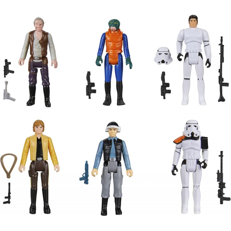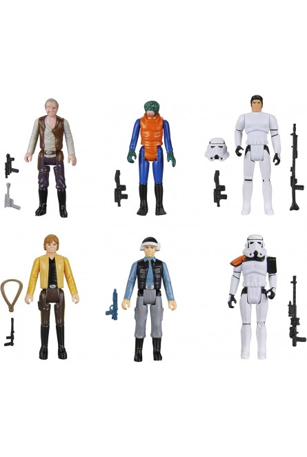 Revive la emoción de Star Wars: A New Hope con este increíble Pack de 6 Figuras Articuladas de 9,5 cm, una verdadera joya para coleccionistas y fanáticos de la saga galáctica más legendaria del cine. Cada figura viene en su blíster original de la línea vintage, cuidadosamente diseñado para capturar la esencia clásica de la trilogía original. Dentro del set encontrarás a personajes emblemáticos y memorables: Dr. Evazan, el temido cirujano del sistema criminal de Mos Eisley; Walrus Man, con su apariencia alienígena inconfundible; Han Solo disfrazado con el uniforme de soldado de asalto imperial, listo para rescatar a la Princesa Leia; Luke Skywalker luciendo su atuendo ceremonial de la entrega de medallas en Yavin 4, símbolo de esperanza y victoria; un valiente Soldado de la Flota Rebelde dispuesto a enfrentarse al Imperio; y un Sandtrooper, el implacable soldado imperial que patrulla los desiertos de Tatooine. Cada figura incluye su bláster láser detallado y articulaciones móviles que permiten recrear las batallas y escenas más épicas de la película. Este pack es el regalo perfecto para revivir la nostalgia de los coleccionistas o iniciar una nueva aventura en una galaxia muy, muy lejana. ¡La Fuerza estará contigo!