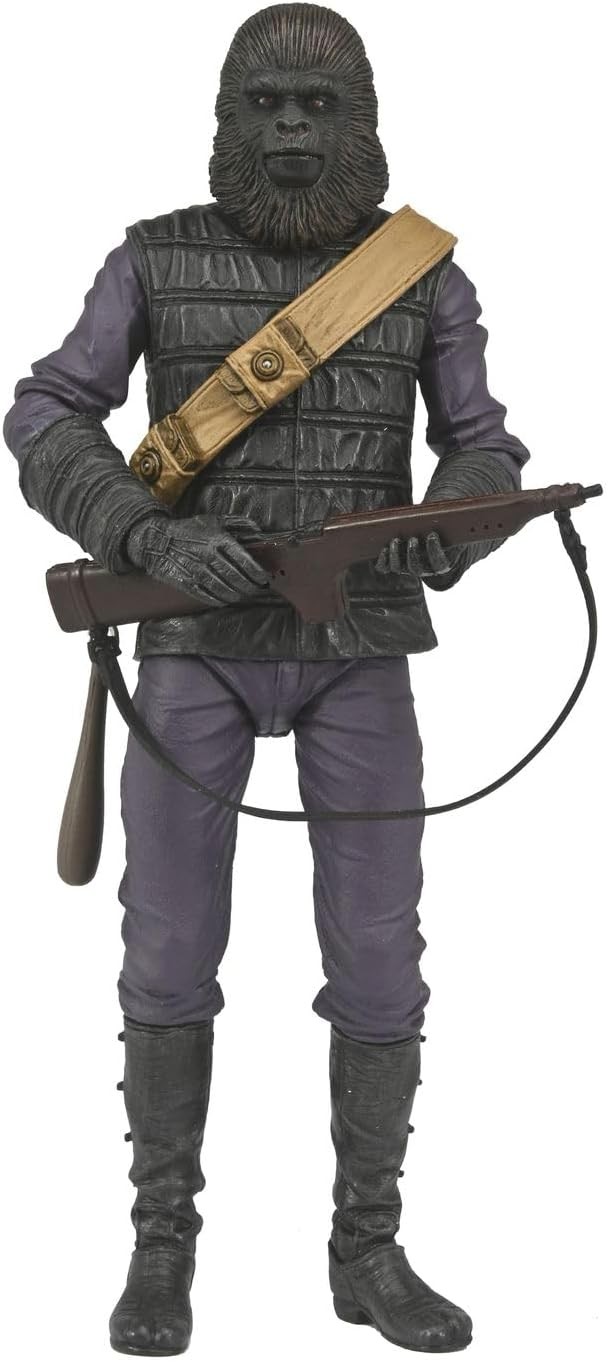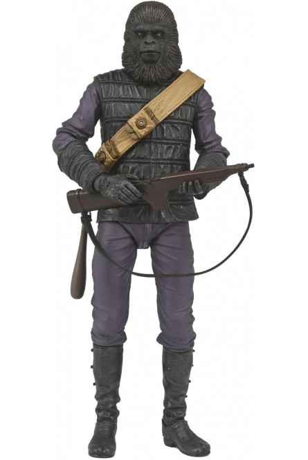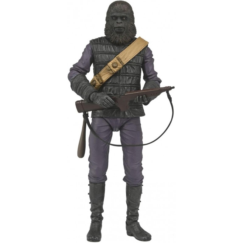 ¡Prepárate para rugir de emoción con la Figura Gorilla Soldier de El Planeta de los Simios! Esta figura articulada de 18 centímetros es una pieza imprescindible para todo coleccionista y amante del cine clásico de ciencia ficción. Inspirada fielmente en la película original, este imponente soldado gorila encarna la fuerza y el carácter indomable del ejército simio que dominó la gran pantalla. Su nivel de detalle es simplemente espectacular: la armadura tiene texturas realistas, tonos metálicos y un acabado envejecido que le da un aire de batalla auténtico. El pelaje, finamente esculpido, refleja sombras y matices que hacen que la figura parezca cobrar vida ante tus ojos. Cada pliegue, cada fibra, cada rasgo está cuidado al máximo para capturar la esencia del guerrero más temido del Planeta de los Simios. Pero eso no es todo: esta figura incluye una mano intercambiable, perfecta para variar sus poses y darle aún más dinamismo, además de una porra y un rifle, ¡armas con las que está listo para patrullar y mantener el orden entre los humanos rebeldes! Imponente, detallada y llena de actitud, la Figura Gorilla Soldier es más que un juguete: es una pieza de colección épica que te transportará directo al corazón de una de las sagas más legendarias del cine. ¡Hazla tuya y deja que el poder simio conquiste tu colección!