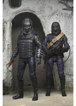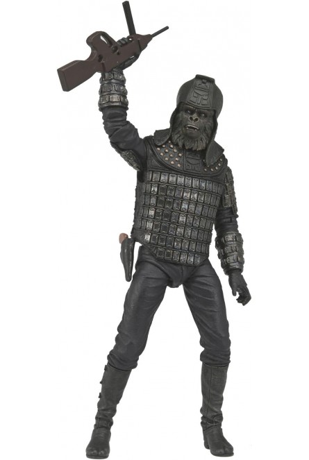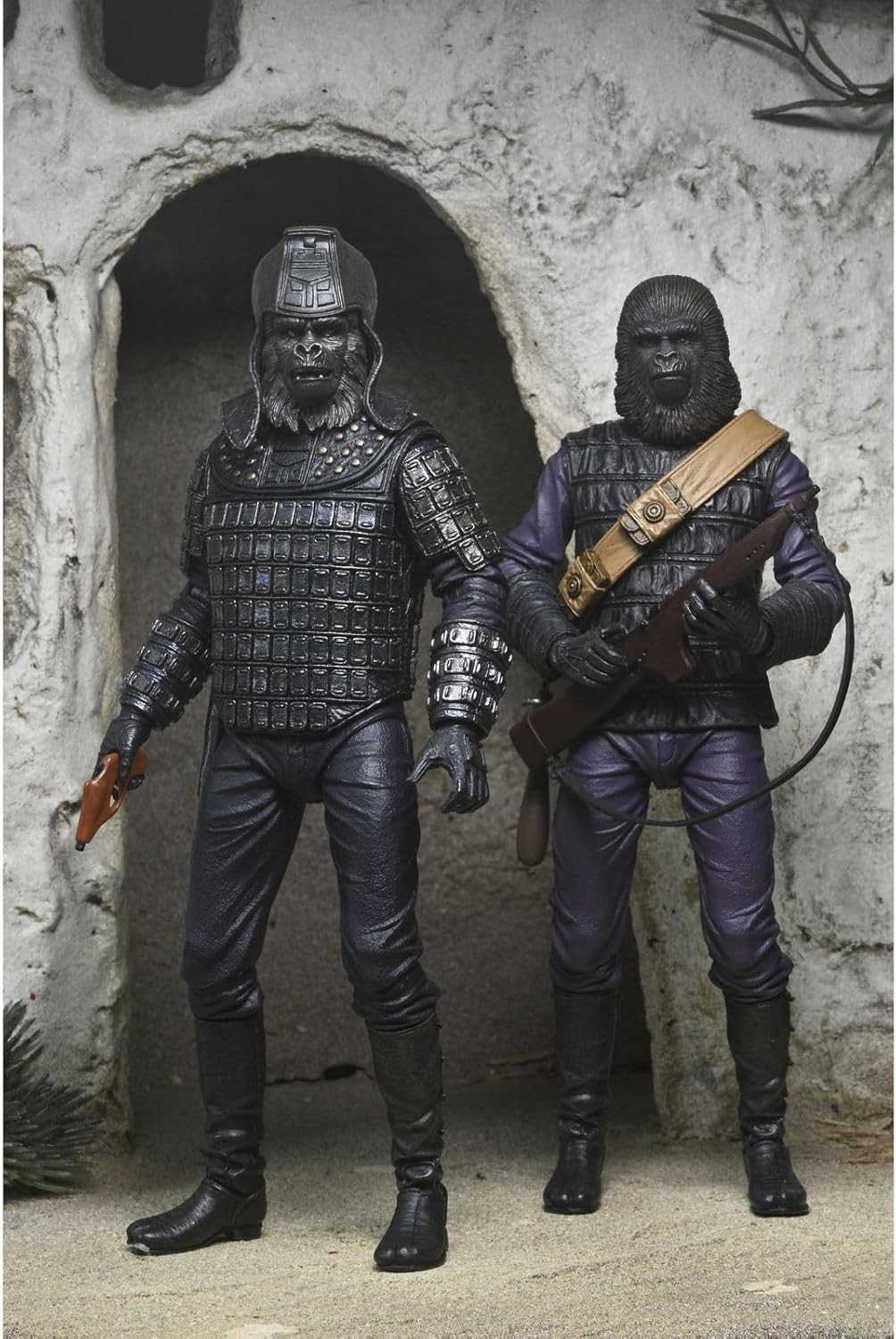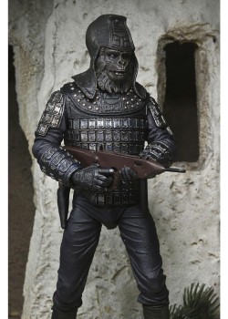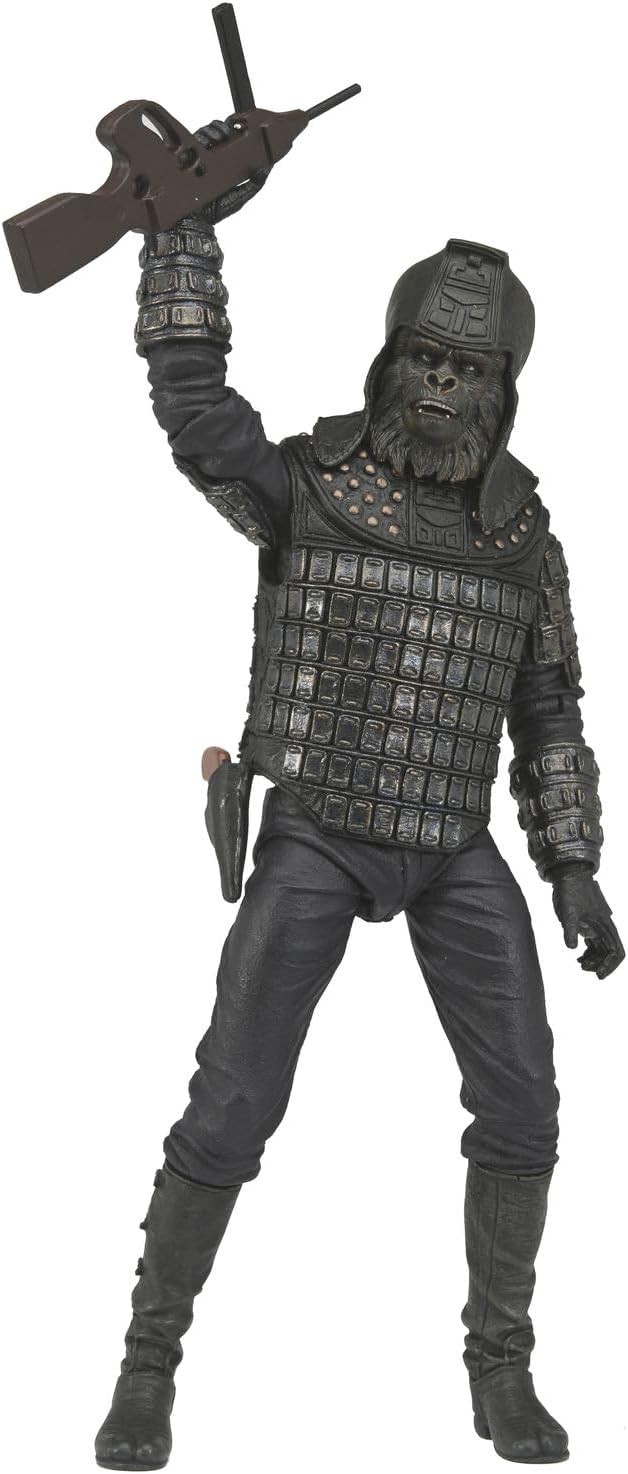 Prepárate para comandar el ejército simio con la figura del General Ursus de El Planeta de los Simios. Esta figura articulada de 18 centímetros es una pieza imprescindible para todo coleccionista y fanático del cine clásico. Basada en el inolvidable personaje de la película original, captura a la perfección su fuerza, autoridad y presencia imponente. La armadura del General Ursus es un espectáculo visual: sus texturas metálicas, relieves detallados y acabado envejecido le otorgan un realismo impresionante. Cada pieza refleja el poder militar y la disciplina del ejército de simios. El pelaje, cuidadosamente esculpido, muestra una textura natural que aporta profundidad y vida al personaje, logrando una figura que parece salida directamente de la pantalla grande. Incluye dos armas, un rifle y una pistola, perfectas para recrear las escenas más icónicas del filme, además de una mano intercambiable que permite ajustar poses y añadir dinamismo a cada exhibición. Su nivel de articulación ofrece una gran variedad de posturas, ideales tanto para exposición como para fotografía. El General Ursus no es solo una figura de acción, es una pieza de colección que evoca la grandeza del cine clásico y el poder del universo del Planeta de los Simios. Una figura legendaria para una colección digna de comandar.