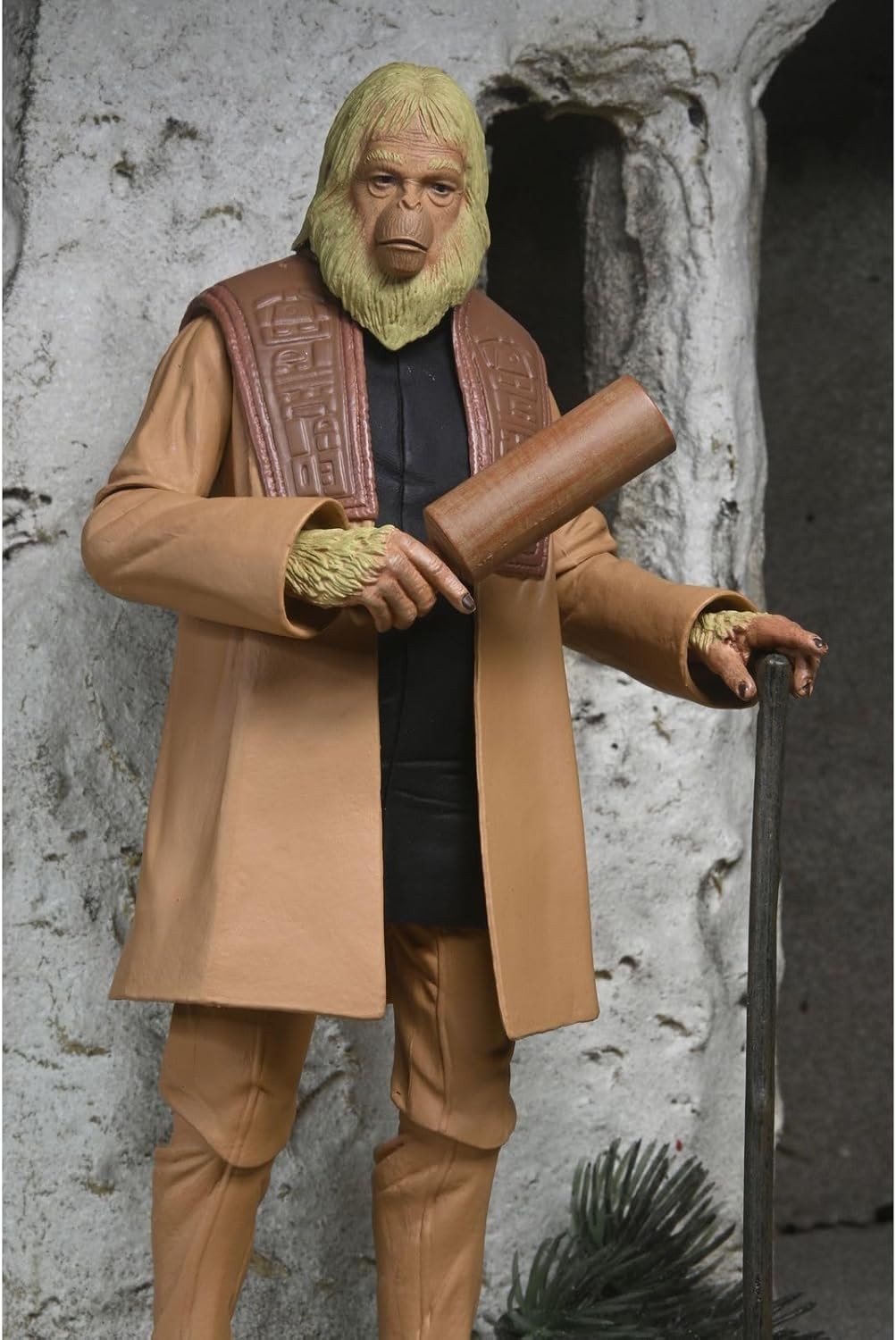 La figura del Dr. Zaius de El Planeta de los Simios es una auténtica joya para coleccionistas y amantes del cine clásico. Con una altura de 18 centímetros y múltiples puntos de articulación, esta figura captura toda la elegancia, sabiduría y autoridad del legendario consejero científico y líder espiritual de la sociedad simia. Cada detalle ha sido cuidadosamente trabajado: el rostro refleja la serenidad y determinación del personaje, mientras que el pelaje luce una textura realista que resalta su aspecto majestuoso. Su vestimenta está recreada con una precisión impresionante, desde los pliegues de su túnica hasta los grabados en su abrigo ceremonial, evocando fielmente el estilo de la película original. La figura incluye dos accesorios icónicos: su bastón, símbolo de poder y sabiduría, y el porta pergaminos, con el que custodia los secretos y leyes sagradas de los simios. Estos complementos le dan una presencia imponente y permiten recrear escenas emblemáticas del filme. Además, su presentación no se queda atrás: la caja es super temática, con ilustraciones inspiradas en el universo del Planeta de los Simios, ideal tanto para exhibir cerrada como para lucirla fuera de su empaque. Una pieza que combina nostalgia, arte y perfección en cada detalle.