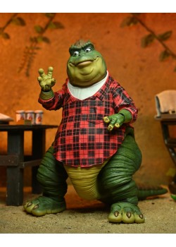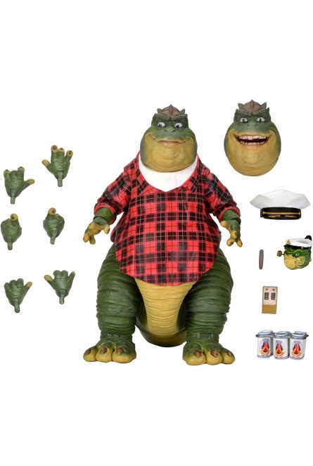 La figura Ultimate Earl Sinclair de la serie Dinosaurios es una auténtica joya para coleccionistas y fanáticos de la televisión clásica. Con sus 18 centímetros de altura y un nivel de detalle sorprendente, esta figura articulada captura a la perfección la esencia del inolvidable patriarca de la familia Sinclair: fuerte, gracioso y siempre listo para una nueva ocurrencia. El esculpido es excepcional, con texturas realistas en la piel, una expresión llena de personalidad y una fidelidad total al personaje original de la serie. Cada pliegue de su ropa de trabajo, su camisa a cuadros y su característico aspecto robusto han sido recreados con un cuidado asombroso. Earl viene acompañado de una impresionante variedad de accesorios que harán las delicias de los fans: múltiples manos intercambiables, una cabeza adicional con una expresión distinta, un six pack de cervezas, un mando a distancia y una gorra de capitán. Cada complemento refleja momentos icónicos de la serie y permite recrear las escenas más divertidas y nostálgicas. Además, la figura se presenta en una caja con tapa y fotos decorativas increíbles, ideal tanto para exhibirla abierta como para conservarla en su empaque original. La Ultimate Earl Sinclair no es solo una figura, es un tributo perfecto a una de las comedias más queridas de los años noventa.