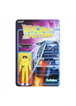 Figura de licencia oficial de la saga "Regreso al Futuro" que te trae Super7 y ReAction Figures. Este Marty McFly con el traje de radiación salía en la primera entrega de la trilogía y gracias a ese particular atuendo convencía a su padre, George McFly, de que era Darth Vader del planeta Vulcano. Marty mide unos 10 cms y está hecho de PVC. Incluye el casco protector y el walkman que le ponía a George. Incluso el blíster en el que viene es una maravilla ilustrada con una imagen del DeLorean en explosivos colores ochenteros.