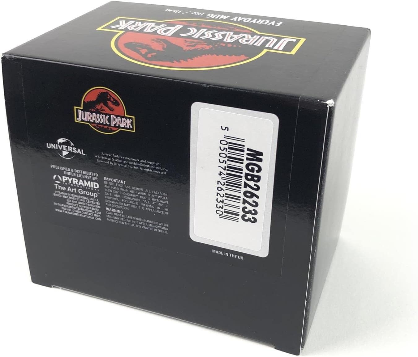 Un clásico entre los clásicos para los fans de los dinosaurios y del cine de los años noventa. La marca Pyramid Internacional ha creado una elegante taza de color negro con el logo de Jurassic Park a todo color en la superficie exterior del cilindro. Está hecha de cerámica de gran calidad y tiene una capacidad de 315 mls. La película dirigida por Steven Spielberg tiene uno de los logos más reconocibles e icónicos de la historia del cine y ahora podrá ser parte de tu día a día con una de las tazas más bonitas que cualquier cinéfilo puede tener en su colección. ¡Hazte con ella antes de que se extinga!