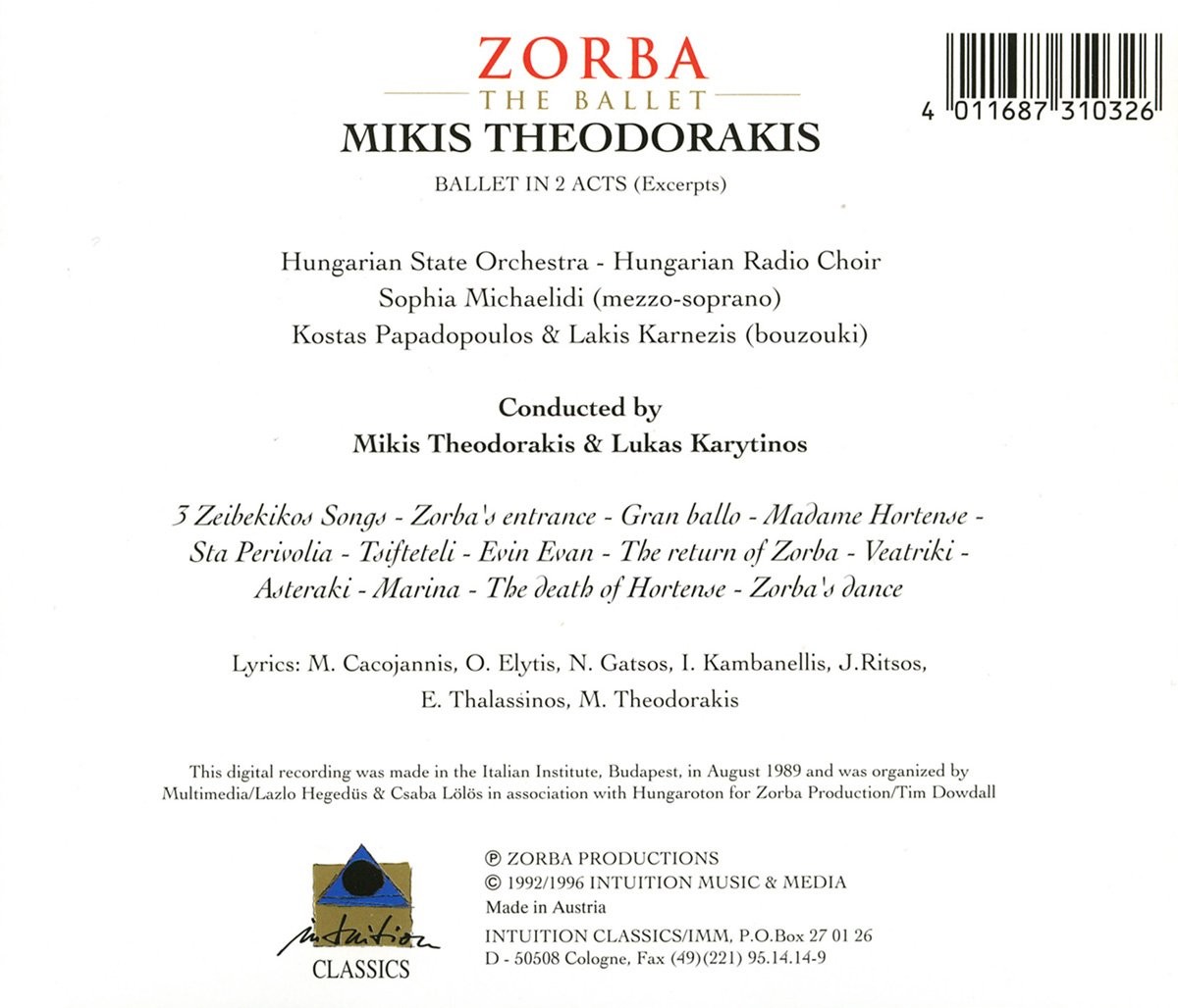 THEODORAKIS:ZORBA [CD de audio] Sophia Michaelidi (Mezzosopran); Kostas Papadopoulos & Lakis Karnezis (Bouzouki); Hungarian Stat