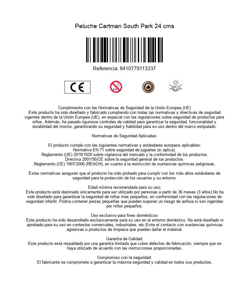 ¡Oh Dios mío, han matado a Kenny! Esa es la frase más conocida de la serie de televisión “South Park”. Creada por Matt Stone y Trey Parker, este irreverente show rompió todos medidores de popularidad en su recorrido original. Ahora, gracias a Play by Play, tienes la oportunidad de coleccionar los suaves peluches de los protagonistas. En este caso te traemos a Cartman, el antagonista de la serie y el que suele ser primera opción de Kyle cuando este deja a su amigo Stan de lado. Manipulador y con un fondo malicioso, el orondo Cartman llega a tu colección de peluches, mide 24 cms y está hecho de fibra 100% reciclada. Es un producto de licencia oficial de South Park y Comedy Central que hará las delicias de los fans de esta esta serie que ejemplificó la incorrección política durante más de una década de éxitos y polémicas.