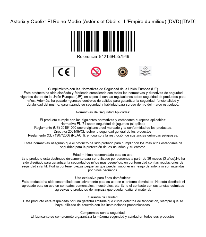 https://dvdstorespain.es/es/peliculas/108524-asterix-y-obelix-el-reino-medio-asterix-et-obelix-l-empire-du-milieu-dvd-dvd--8421394557949.html108524Asterix y Obelix: El Reino Medio (Astérix et Obélix : L'Empire du milieu) (DVD) [DVD]<div id="productDescription" class="a-section a-spacing-small"> <!-- show up to 2 reviews by default --><br /><p> <span>¡ASTÉRIX Y OBÉLIX REGRESAN CON NUEVAS PERIPECIAS LEJOS DE LA GALIA! <br /><br />RODEADO DE UN REPARTO XXL, GUILLAUME CANET FIRMA ESTA EXCELENTE COMEDIA EN LA QUE SE SUCEDEN AVENTURAS ESPECTACULARES <br /><br />Año 50 A.C., la Emperatriz de China acaba de ser encarcelada tras un golpe de Estado incitado por Dang Sin Kuing, un príncipe traidor. Ayudada por Granodemaíz, el comerciante fenicio, y su fiel guardaespaldas Wang Tah, la única hija de la Emperatriz, la Princesa Fo Yong, huye a la Galia para pedir ayuda a dos valientes guerreros, Astérix y Obélix, quienes están dotados de una fuerza sobrehumana gracias a su magnífica poción mágica. Nuestros inseparables galos aceptan, por supuesto, ayudar a la Princesa a salvar a su madre y liberar a su país. Y así comienza un gran viaje lleno de aventuras rumbo a China. Pero César y su poderoso ejército, sedientos de una nueva conquista, también se dirigen hacia el Reino Medio... <br /><br />EXTRAS: Tráiler • Galería <br /><br />Imagen: 2,39:1 <br /><br />Duración: 106 minutos <br /><br />Región del disco: 2 <br /><br />Idiomas: Castellano y Francés 5.1 y 2.0 Estéreo – Audiodescripción 2.0 en Castellano. <br /><br />Subtítulos: Castellano, Castellano para personas con discapacidad auditiva.</span> </p> </div>https://dvdstorespain.es/618681-home_default/asterix-y-obelix-el-reino-medio-asterix-et-obelix-l-empire-du-milieu-dvd-dvd-.jpg7.3554instockDivisa Own DVD Catalog7.35547.3554002023-05-24T02:32:51+0200/Inicio/Inicio/DVD/Inicio/Películas/Inicio/Nuevos