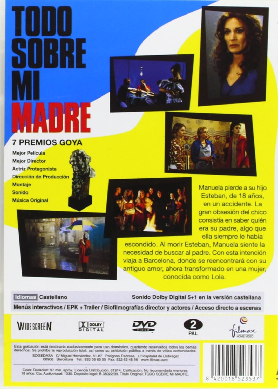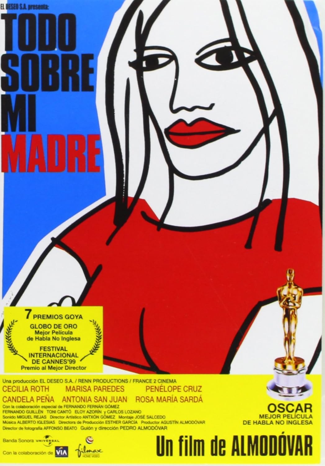 Madrid. Manuela, una madre soltera, ve morir a su hijo el día en que cumple 17 años, por echarse a correr para conseguir el autógrafo de Huma Rojo, su actriz favorita. Destrozada, Manuela viaja entonces a Barcelona en busca del padre del chico / Premios: 1999: Oscar: Mejor película extranjera 1999: Globo de Oro: Mejor película extranjera 1999: Festival de Cannes: mejor director, Premio del Jurado Ecuménico 1999: 7 Premios Goya: incluyendo mejor película, director y actriz (Roth). 14 nom. 1999: 2 premios BAFTA: Mejor director y película de habla no inglesa. 3 nom. 1999: Premios César: Mejor película extranjera