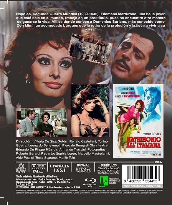 https://dvdstorespain.es/es/peliculas/111066-matrimonio-a-la-italiana-matrimonio-all-italiana-bdr-blu-ray--8436593554453.html111066Matrimonio A La Italiana [Blu-ray R] (1964) Matrimonio all'italianaNápoles, Segunda Guerra Mundial (1939-1945). Filomena Marturano, una bella joven que está sola en el mundo, trabaja en un prostíbulo, pues no encuentra otra manera de ganarse la vida. Allí es donde conoce a Domenico Soriano, más conocido como Don Mimi, un acomodado burgués que la retira de la profesión y la lleva a vivir a su casa.https://dvdstorespain.es/626174-home_default/matrimonio-a-la-italiana-matrimonio-all-italiana-bdr-blu-ray-.jpg9.0083instockMON INTER COMERZ S.L9.00839.0083002023-07-07T01:55:37+0200/Inicio/Inicio/Blu-ray/Inicio/Películas/Inicio/Nuevos/Inicio/NO EBY DVDR-BDR