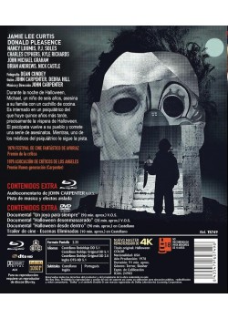 Sinopsis Durante la noche de Halloween, Michael, un niño de seis años, asesina a su familia con un cuchillo de cocina. Es internado en un psiquiátrico del que huye quince años más tarde, precisamente la víspera de Halloween. El psicópata vuelve a su pueblo y comete una serie de asesinatos. Mientras, uno de los médicos del psiquiátrico le sigue la pista. Audios CASTELLANO REDOBLAJE DD 5.1, CASTELLANO DOBLAJE ORIGINAL DD 5.1 Y 2.0, INGLES DTSHD 5.1CASTELLANO REDOBLAJE DD 5.1, CASTELLANO DOBLAJE ORIGINAL DD 5.1 Y 2.0, INGLES DTSHD 5.1 Subtitulos CASTELLANO, PORTUGUÉS, INGLÉS Extras Documental "Un joya para siempre" 90 min. v.o.s Audiocomentario de JOHN CARPENTER v.o.s • Documental "Halloween desenmascarado" 28 min. v.o.s Documental "Halloween desde dentro" 90 min. (en castellano) Trailer de cine Escenas Eliminadas 10 minutos aprox. (en castellano