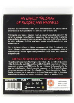 Shot in Big Bear, California in 1980 but not released until 1984, L. Scott Castillo, Jr. s Satan s Blade overcomes the limitations of its shoestring budget with a game cast and all-pervasive, creepy atmosphere - key to which is a freakish nightmare sequence that s sure to inspire more than a few sleepless nights.