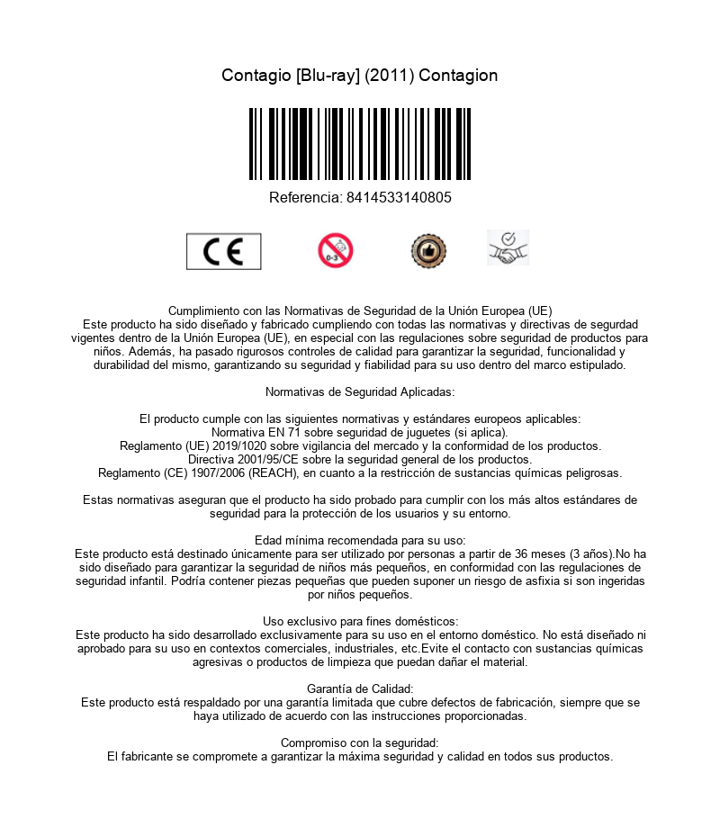 https://dvdstorespain.es/es/peliculas/115165-contagio-blu-ray-2011-contagion-8414533140805.html115165Contagio [Blu-ray] (2011) ContagionDe repente, sin saber cuál es su origen, aunque todo hace sospechar que comienza con el viaje de una norteamericana a un casino de Hong Kong, un virus mortal comienza a propagarse por todo el mundo. En pocos días, la enfermedad empieza a diezmar a la población. El contagio se produce por mero contacto entre los seres humanos. Un thriller realista y sin efectos especiales sobre los efectos de una epidemia. https://dvdstorespain.es/649081-home_default/contagio-blu-ray-2011-contagion.jpg11.4876instockWarner Bros. Entertainment11.487611.4876002024-02-21T03:18:33+0100/Inicio/Inicio/Blu-ray/Inicio/Películas/Inicio/Nuevos/Inicio/VELADA SP 70/Inicio/VELADA DE 100/Inicio/VELADA FR 100/Inicio/VELADA IT 100