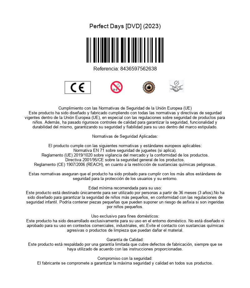 https://dvdstorespain.es/es/peliculas/115813-perfect-days-dvd-2023-8436597562638.html115813Perfect Days [DVD] (2023)Hirayama parece totalmente satisfecho con su sencilla vida de limpiador de retretes en Tokio. Fuera de su estructurada rutina diaria, disfruta de su pasión por la música y los libros. Le encantan los árboles y les hace fotos. Una serie de encuentros inesperados revelan poco a poco más de su pasado. https://dvdstorespain.es/653570-home_default/perfect-days-dvd-2023.jpg9.5041instockKoji Yanai, Takuma Takasaki9.50419.5041002024-04-12T21:15:40+0200/Inicio/Inicio/DVD/Inicio/Películas/Inicio/Nuevos/Inicio/VELADA SP 70/Inicio/VELADA DE 100/Inicio/VELADA FR 100/Inicio/VELADA IT 100