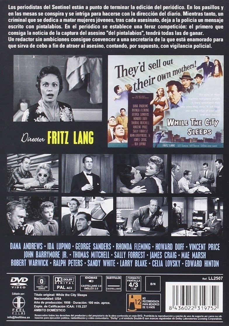 https://dvdstorespain.es/es/peliculas/1162-mientras-nueva-york-duerme-dvd--8436022319752.html1162MIENTRAS NUEVA YORK DUERME (DVD)<p>Los periodistas del Sentinel están a punto terminar la edición del periódico. En los pasillos y en las mesas se conspira y se intriga para hacerse con la dirección del diario. Mientras tanto, un criminal que se dedica a matar mujeres jóvenes, tras cada asesinato, deja a la policía un mensaje escrito con pintalabios</p>https://dvdstorespain.es/765572-home_default/mientras-nueva-york-duerme-dvd-.jpg7.438instock7.4387.438002015-04-08T12:23:47+0200/Inicio/Inicio/DVD/Inicio/Películas/Inicio/Nuevos