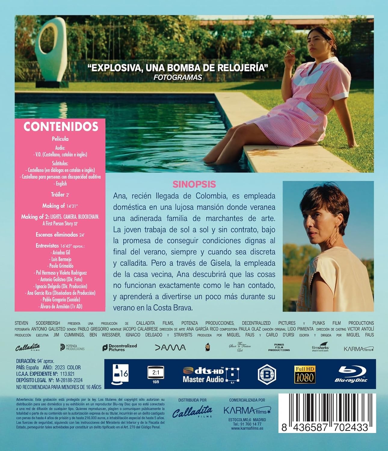 https://dvdstorespain.es/es/peliculas/120049-calladita-blu-ray-2023-8436587702433.html120049Calladita [Blu-ray] (2023)Ana, recién llegada de Colombia, es empleada doméstica en una lujosa mansión donde veranea una adinerada familia de marchantes de arte. La joven trabaja de sol a sol, sin contrato, bajo la promesa de conseguir condiciones dignas al final del verano, siempre y cuando sea discreta y calladita. Pero a través de Gisela, la empleada de la casa vecina, Ana descubrirá que las cosas no funcionan exactamente como le han contado, y aprenderá a divertirse un poco más durante su verano en la Costa Brava.https://dvdstorespain.es/1044346-home_default/calladita-blu-ray-2023.jpg13.1405instockKarma Films13.140513.1405002024-12-31T04:18:48+0100/Inicio/Inicio/Blu-ray/Inicio/Películas/Inicio/Nuevos/Inicio/VELADA SP 70/Inicio/VELADA DE 75/Inicio/VELADA FR 75/Inicio/VELADA IT 75