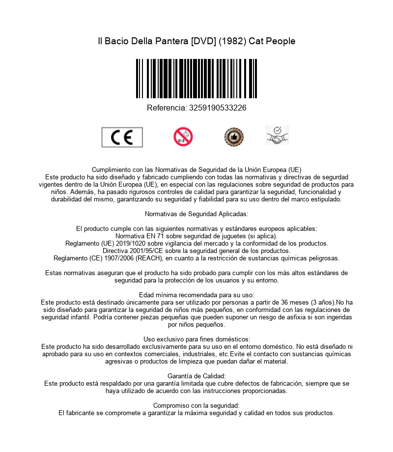 https://dvdstorespain.es/es/peliculas/122334-il-bacio-della-pantera-dvd--3259190533226.html122334Il Bacio Della Pantera [DVD] (1982) Cat PeopleKinski interpreta a una mujer de la raza humana felina, que se convierte en pantera en determinadas situaciones. Un día dedice ir a Nueva Orleans a visitar a su hermano (Malcolm McDowell), y allí un hombre del zoo (John Heard) se queda fascinado con ella... Remake del conocido film de Jacques Tourneur. https://dvdstorespain.es/731607-home_default/il-bacio-della-pantera-dvd-.jpg9.2562instockUniversal9.25629.2562002025-04-16T14:45:03+0200/Inicio/Inicio/DVD/Inicio/Películas/Inicio/Nuevos