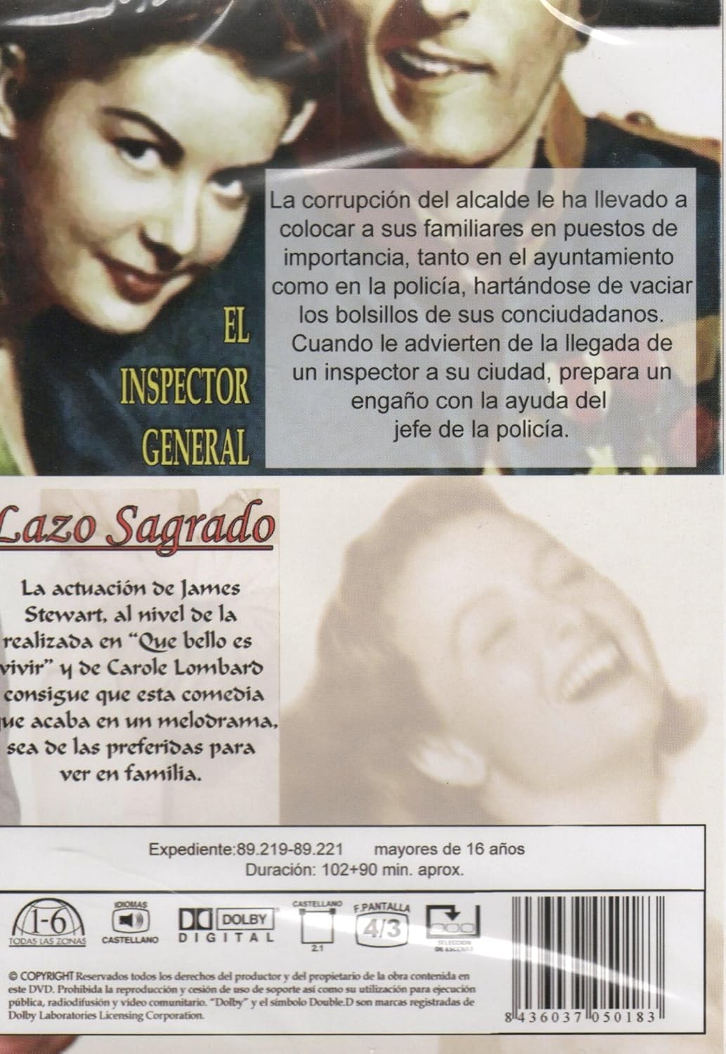 Disfruta de dos clásicos del cine en un pack especial de DVD que incluye 'El Inspector General' y 'Lazo Sagrado'. En 'El Inspector General', descubre una trama de corrupción y engaño cuando un alcalde corrupto intenta mantener su poder ante la llegada de un inspector a la ciudad. La película combina comedia y crítica social de manera magistral. Por su parte, 'Lazo Sagrado' es una comedia que evoluciona hacia el melodrama, destacando por sus brillantes actuaciones. Con una duración total aproximada de 192 minutos, este pack doble es ideal para ver en familia. Las películas están en formato DVD con calidad Dolby Digital, audio en castellano y formato de pantalla 4:3. Apto para mayores de 16 años, estas joyas cinematográficas te brindarán horas de entretenimiento de calidad con interpretaciones memorables y tramas cautivadoras que han resistido el paso del tiempo.
