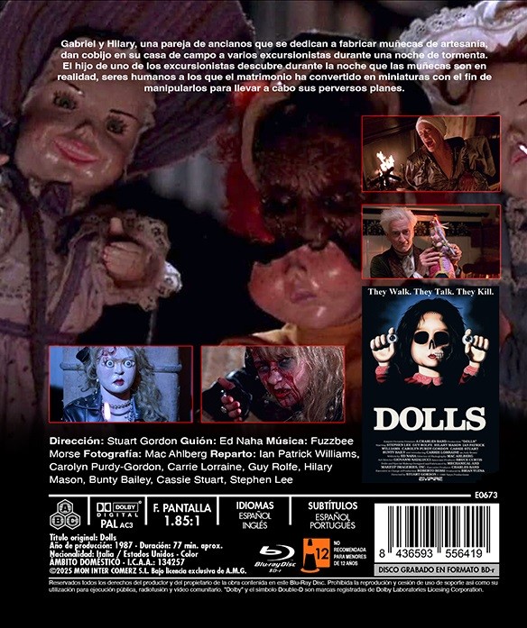 https://dvdstorespain.es/es/peliculas/126634-dolls-8436593556419.html126634Dolls [Blu-ray R] (1987)Gabriel y Hilary, una pareja de ancianos que se dedican a fabricar muñecas de artesanía, dan cobijo en su casa de campo a varios excursionistas durante una noche de tormenta. El hijo de uno de los excursionistas descubre durante la noche que las muñecas son en realidad, seres humanos a los que el matrimonio ha convertido en miniaturas con el fin de manipularlos para llevar a cabo sus perversos planes.https://dvdstorespain.es/1078279-home_default/dolls.jpg9.0909instock9.09099.0909002025-09-03T09:45:09+0200/Inicio/Inicio/Películas/Inicio/Nuevos/Inicio/NO EBY DVDR-BDR/Inicio/Blu-ray R