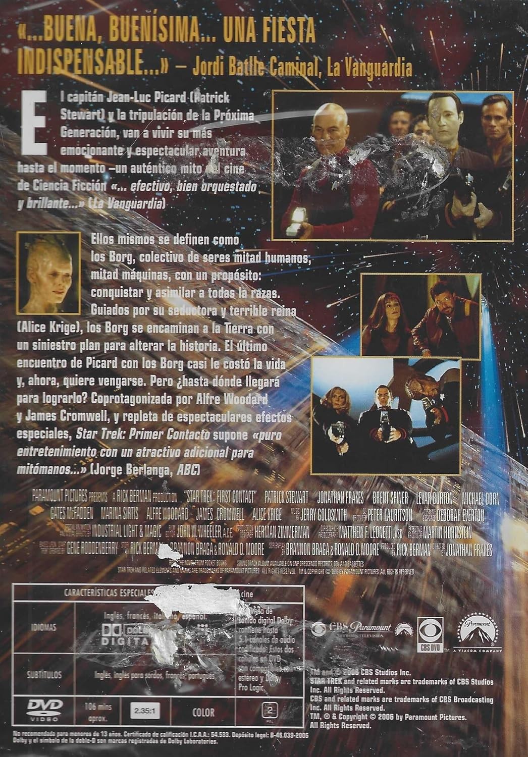 Star Trek: Primer Contacto llega en DVD con una experiencia cinematográfica inolvidable. Esta épica aventura de ciencia ficción presenta una batalla crucial entre la tripulación de la Enterprise y los temibles Borg, un colectivo de seres mitad humanos y mitad máquinas. La película combina efectos especiales espectaculares con una narrativa cautivadora que mantiene al espectador al borde del asiento. Presentada en formato DVD para la Región 2, esta edición incluye el filme en color con audio en varios idiomas. La película, con una duración aproximada de 60 minutos, ofrece una experiencia visual y sonora de alta calidad con Dolby Digital. El contenido está clasificado como no recomendado para menores de 13 años, lo que garantiza una experiencia cinematográfica apropiada para adolescentes y adultos. Esta aventura espacial, repleta de acción y drama, representa uno de los capítulos más emocionantes de la saga Star Trek, donde la resistencia contra los Borg se convierte en una lucha por la supervivencia de la humanidad.