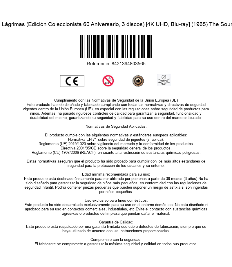 https://dvdstorespain.es/es/peliculas/127227-sonrisas-y-lagrimas-ed-60-aniversario-the-sound-of-music-1965-robert-wise-4k-uhd-blu-ray-blu-ray-extras-3-postal-8421394803565.html127227Sonrisas Y Lágrimas (Edición Coleccionista 60 Aniversario, 3 discos) [4K UHD, Blu-ray] (1965) The Sound of MusicAustria, 1938. María es una alegre novicia que abandona la abadía para convertirse en la institutriz de los siete hijos de un militar retirado, el capitán von Trapp, viudo desde hace poco tiempo. La casa de los von Trapp funciona como un cuartel, pero María consigue devolver la alegría a los niños y ganarse su respeto y cariño.https://dvdstorespain.es/1088448-home_default/sonrisas-y-lagrimas-ed-60-aniversario-the-sound-of-music-1965-robert-wise-4k-uhd-blu-ray-blu-ray-extras-3-postal.jpg32.9752instockDivisa HV - Disney32.975232.9752002025-10-10T21:30:56+0200/Inicio/Inicio/Películas/Inicio/Nuevos/Inicio/4K-UHD