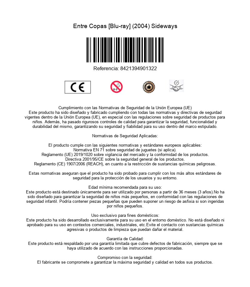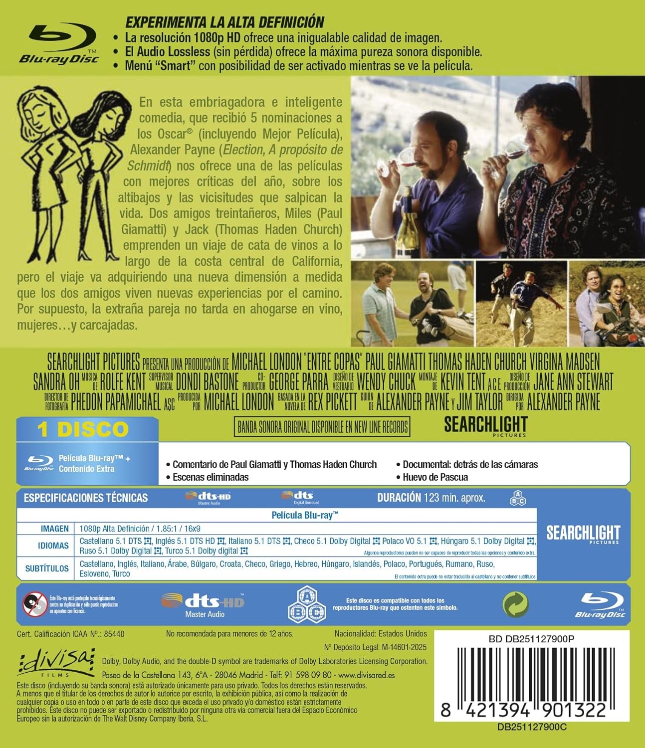 https://dvdstorespain.es/es/peliculas/127229-entre-copas-sideways-2004-alexander-payne-blu-ray-blu-ray-2025--8421394901322.html127229Entre Copas [Blu-ray] (2004) SidewaysMiles, un divorciado deprimido, aspirante a escritor y apasionado del vino, propone a su viejo amigo Jack, un actor fracasado que está a punto de casarse, hacer un viaje para visitar viñedos y probar vinos antes de su boda. Forman una extraña pareja: Jack es un seductor; Miles, un pesimista. Jack pretende saborear sus últimos días de libertad, Miles sólo aspira a paladear un vino perfecto. Jack se conforma con un Merlot barato, Miles se muere por el perfecto Pinot. De hecho, lo único que tienen en común son sus ambiciones fallidas y la pérdida de la juventud. https://dvdstorespain.es/1088455-home_default/entre-copas-sideways-2004-alexander-payne-blu-ray-blu-ray-2025-.jpg11.5702instockDivisa HV - Disney11.570211.5702002025-10-10T21:31:21+0200/Inicio/Inicio/Blu-ray/Inicio/Películas/Inicio/Nuevos