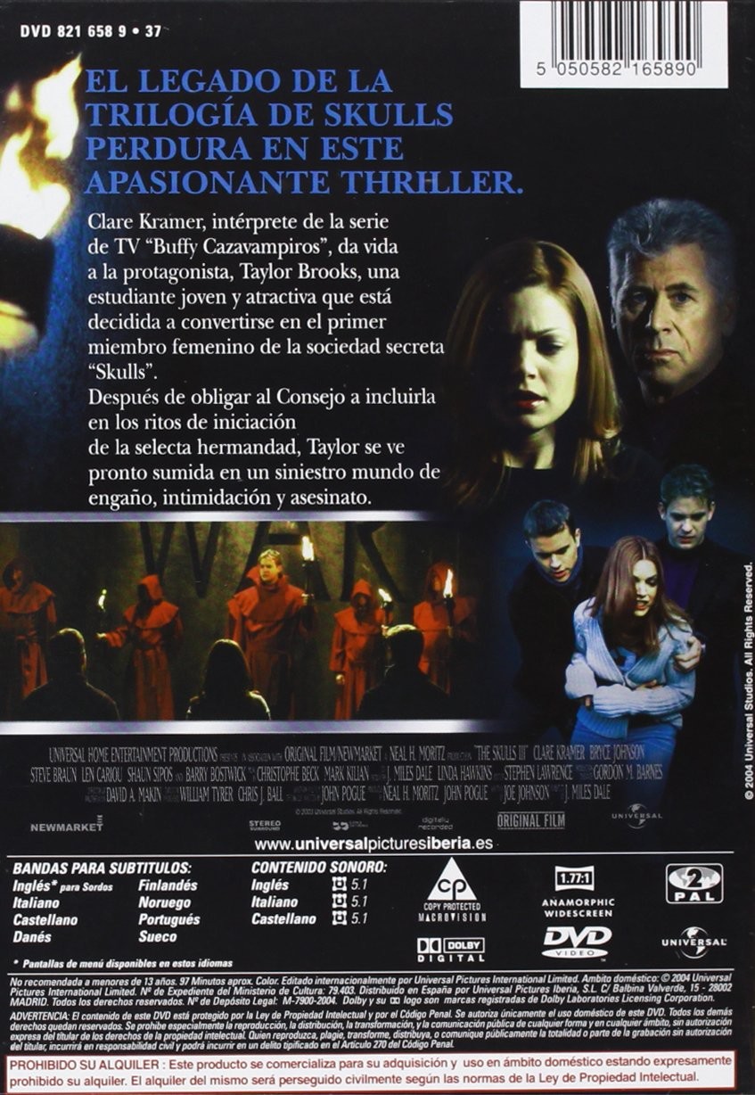 https://dvdstorespain.es/es/peliculas/127326-skulls-3-dvd-universal-dvd-2009--5050582165890.html127326The Skulls III [DVD] (2003)Taylor Brooks (Clare Kramer) es una estudiante joven y atractiva que está decidida a convertirse en el primer miembro femenino de la poderosa sociedad secreta "The Skulls". Después de obligar al Consejo a incluirla en los ritos de iniciación de la selecta hermandad, Taylor se ve pronto sumida en un siniestro mundo de engaño, intimidación y asesinato... https://dvdstorespain.es/1090936-home_default/skulls-3-dvd-universal-dvd-2009-.jpg5.9504instockUniversal5.95045.9504002025-10-20T19:30:12+0200/Inicio/Inicio/DVD/Inicio/Películas/Inicio/Nuevos