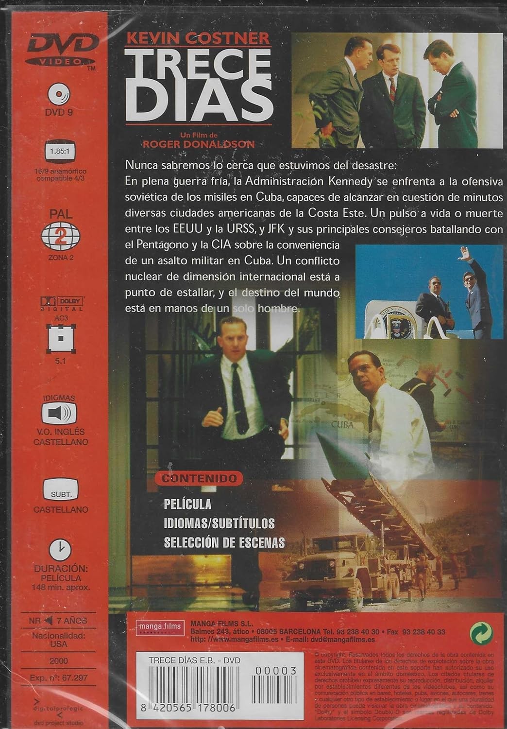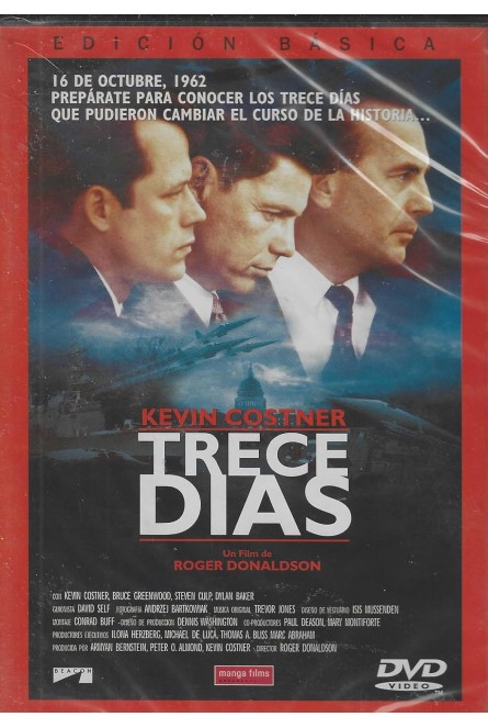 https://dvdstorespain.es/es/peliculas/127363-trece-dias-dvd-edicion-basica-dvd-2024--0634065160791.html127363Trece Días (Edición Básica) [DVD] (2000) Thirteen DaysCrisis de los misiles de Cuba. En octubre de 1962, una serie de fotografías aéreas obtenidas por aviones norteamericanos revelaron que los soviéticos estaban instalando en la isla misiles que podrían alcanzar gran parte de los Estados Unidos. Para obligar a la URSS a desmantelarlos, el presidente John F. Kennedy y sus colaboradores decidieron el bloqueo de la isla. https://dvdstorespain.es/1091486-home_default/trece-dias-dvd-edicion-basica-dvd-2024-.jpg4.6281instockResearch4.62814.6281002025-10-21T04:45:34+0200/Inicio/Inicio/DVD/Inicio/Películas/Inicio/Nuevos