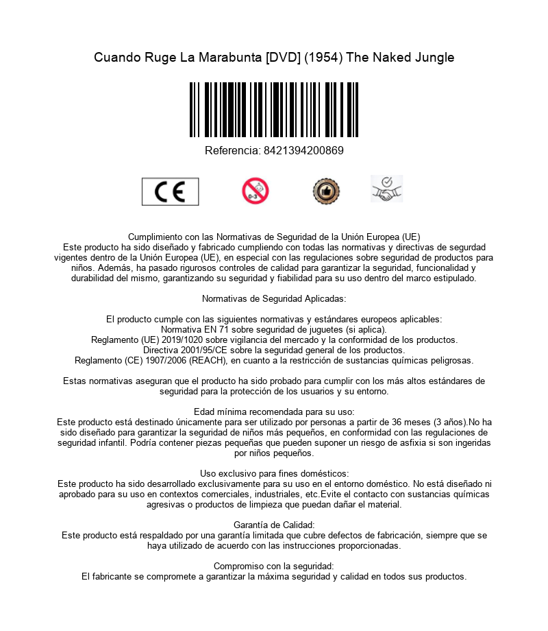 https://dvdstorespain.es/es/peliculas/127841-cuando-ruge-la-marabunta-the-naked-jungle-1954-dvd-dvd-2025--8421394200869.html127841Cuando Ruge La Marabunta [DVD] (1954) The Naked JungleEn la jungla sudamericana, el propietario de una gran plantación (Charlton Heston) decide casarse por correspondencia para tener un hijo que herede su hacienda. A su esposa (Eleanor Parker), recién llegada de Nueva Orleans, no le resultará fácil adaptarse a la brusquedad del marido y a las costumbres de los nativos. Mientras, una terrible plaga de hormigas asesinas amenaza la región... https://dvdstorespain.es/1099909-home_default/cuando-ruge-la-marabunta-the-naked-jungle-1954-dvd-dvd-2025-.jpg10.7025instockDivisa HV - Paramount10.702510.7025002025-11-12T09:31:35+0100/Inicio/Inicio/DVD/Inicio/Películas/Inicio/Nuevos