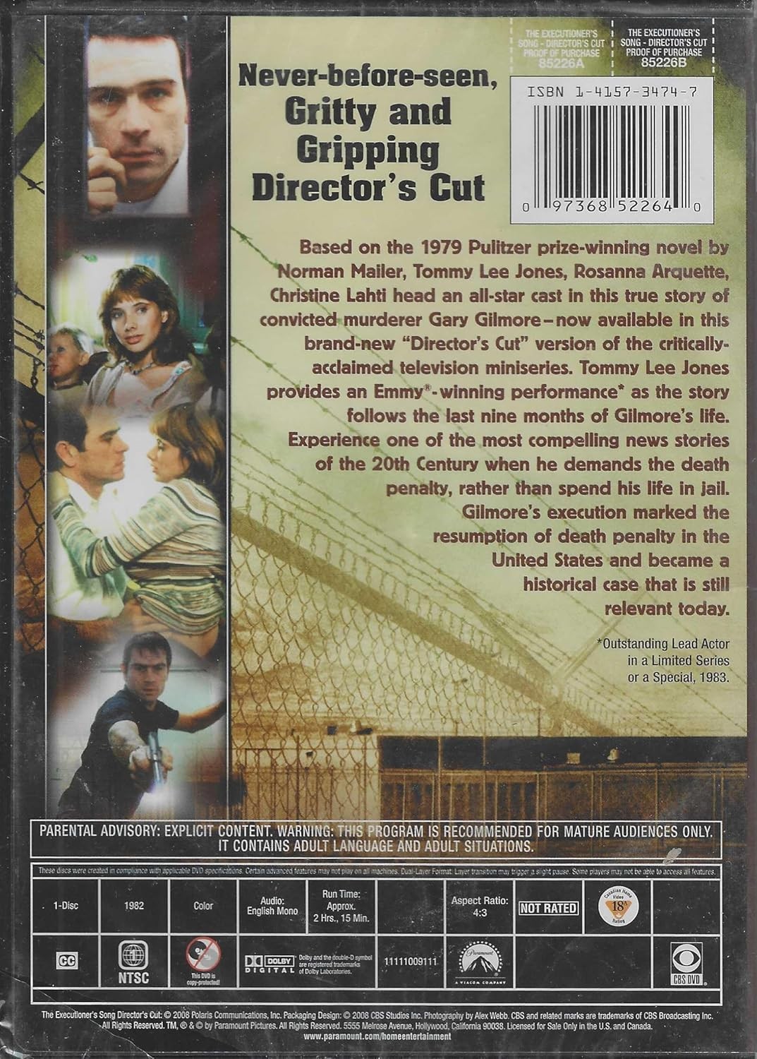 Descubre 'The Executioner's Song', una extraordinaria miniserie televisiva en formato Director's Cut basada en la novela ganadora del Premio Pulitzer de Norman Mailer. Esta versión nunca antes vista presenta una historia cruda y cautivadora sobre Gary Gilmore, un caso que marcó un hito en la historia judicial estadounidense. La producción de 1982, con una duración aproximada de 2 horas y 15 minutos, ofrece una actuación galardonada con el Emmy que explora los últimos nueve meses en la vida de un convicto que exige la pena capital en lugar de cadena perpetua. Esta edición en DVD, presentada en formato 4:3 y audio mono en inglés, incluye contenido para audiencias maduras. La película representa un momento histórico significativo que marcó la reanudación de la pena capital en los Estados Unidos. Con subtítulos cerrados disponibles y calidad de imagen a color, esta producción de Paramount ofrece una experiencia cinematográfica intensa y reflexiva sobre uno de los casos más impactantes del siglo XX.