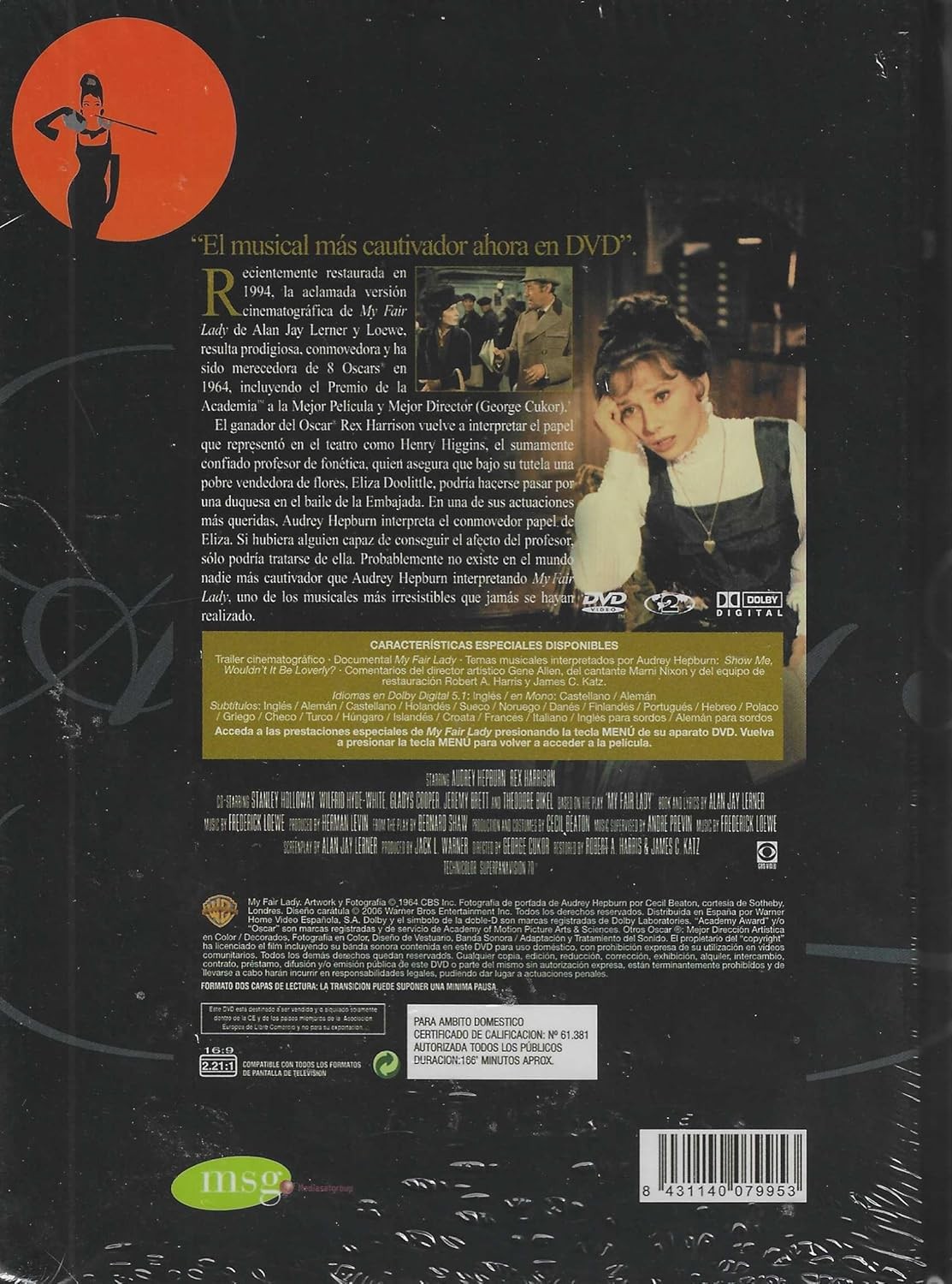 Sumérgete en la magia del musical más cautivador de todos los tiempos con esta edición especial en DVD de My Fair Lady. Esta obra maestra cinematográfica de 1964, protagonizada por Audrey Hepburn y Rex Harrison, te transportará al Londres eduardiano donde la transformación de Eliza Doolittle cobra vida con una elegancia incomparable. Ganadora de 8 premios Oscar, incluyendo Mejor Película y Mejor Director, esta producción combina actuaciones magistrales, música inolvidable y una cinematografía deslumbrante. La edición libro incluye características especiales como comentarios del director, documentales exclusivos y contenido adicional que enriquecerán tu experiencia cinematográfica. Con una duración aproximada de 170 minutos, este clásico atemporal es perfecto para coleccionistas de cine y amantes de los musicales que buscan revivir la magia dorada de Hollywood.