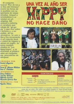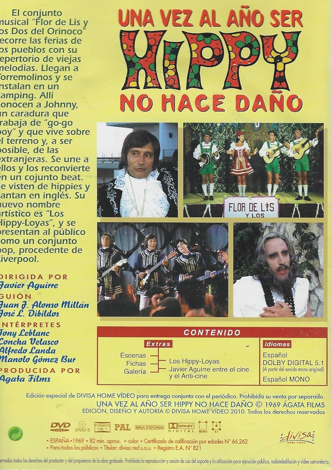 https://dvdstorespain.es/es/peliculas/128541-una-vez-al-ano-ser-hippy-no-hace-dano-dvd-edicion-sobre-dvd-2024--0634065165246.html128541Una Vez al Año Ser Hippy no Hace Daño (Edición Sobre) [DVD] (1969)"Flor de Lis y los Dos del Orinoco" es un grupo musical compuesto por Lis (Concha Velasco), Ricardo (Alfredo Landa) y Silvestre (Manolo Gómez Bur), que recorre los pueblos de España tocando su anticuada música en las ferias y bares sin demasiado éxito. Para intentar revertir su precaria situación deciden probar suerte en la turística Torremolinos, donde conocerán a Johnny (Tony Leblanc), un vividor que les muestra las nuevas modas que hay por esa zona y que se convertirá en su mánager y nuevo componente. Su primer cambio será hacer de ellos un grupo de pop beat al que llamarán "Los Hippy-Loyas". Y en su nueva andadura hippy-pop los cuatro amigos se aventurarán en los ambientes más modernos de la Costa del Sol.https://dvdstorespain.es/1114156-home_default/una-vez-al-ano-ser-hippy-no-hace-dano-dvd-edicion-sobre-dvd-2024-.jpg4.9587instock4.95874.9587002025-12-26T00:47:24+0100/Inicio/Inicio/DVD/Inicio/Películas/Inicio/Nuevos