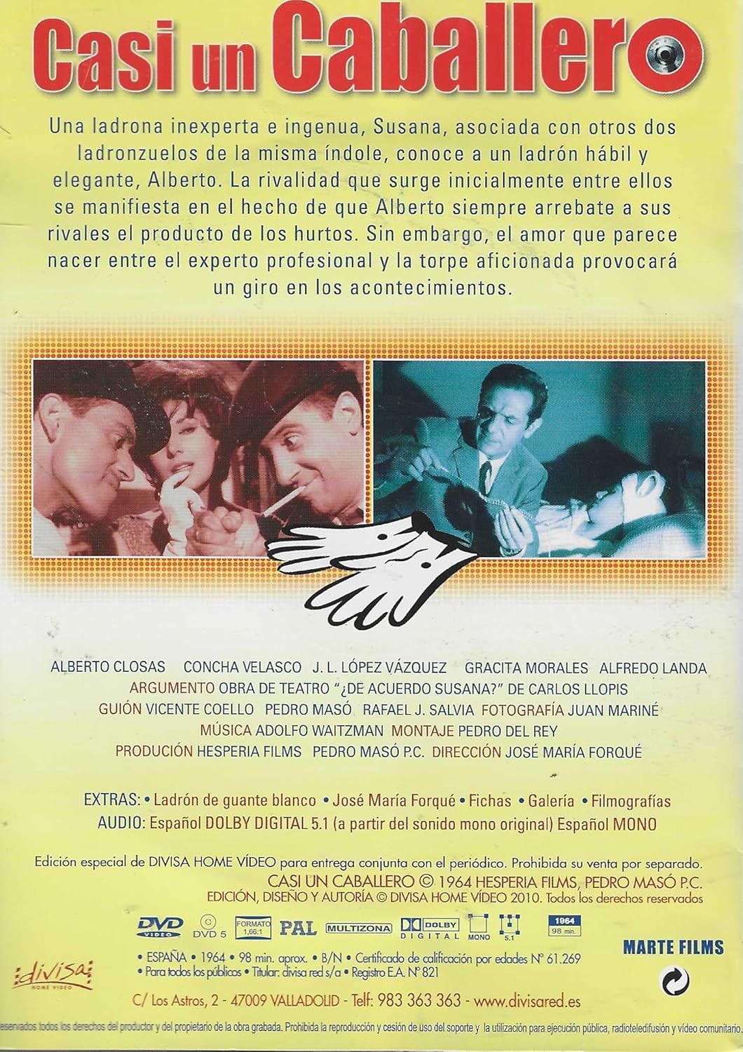 https://dvdstorespain.es/es/peliculas/128545-casi-un-caballero-dvd-edicion-sobre-dvd-2024--0634065165291.html128545Casi un Caballero (Edición Sobre) [DVD] (1964)Susana, una ladrona inexperta e ingenua que trabaja con dos ladronzuelos de poca monta, conoce a Alberto, un ladrón hábil y elegante. La rivalidad que surge entre ellos es inevitable, sobre todo porque Alberto siempre se queda con el botín. Adaptación de la obra de Carlos Llopis titulada "¿De acuerdo, Susana?". https://dvdstorespain.es/1114488-home_default/casi-un-caballero-dvd-edicion-sobre-dvd-2024-.jpg4.9587instock4.95874.9587002025-12-26T10:45:03+0100/Inicio/Inicio/DVD/Inicio/Películas/Inicio/Nuevos
