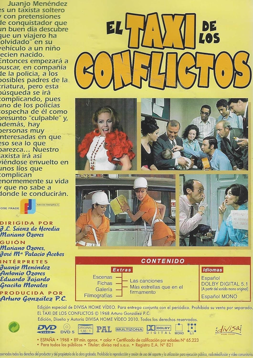 https://dvdstorespain.es/es/peliculas/128584-el-taxi-de-los-conflictos-dvd-edicion-sobre-dvd-2024--0634065165369.html128584El Taxi de los Conflictos (Edición Sobre) [DVD] (1969)Tadeo (Juanjo Menéndez) es un taxista soltero que está a punto de vivir un agitadísimo turno de trabajo. A lo largo de la jornada se suben a su taxi heterogéneos personajes, que dan lugar a las más variopintas situaciones. Cuando alguno de ellos deja "olvidado" en el taxi a un bebé, Tadeo se verá envuelto en un enorme lío con la policía (Eduardo Fajardo y Antonio Ozores) lo que le complica la vida justo cuando va a tener una cita con una misteriosa mujer (Concha Velasco) que, al parecer, tiene mucho interés en quedar con él.https://dvdstorespain.es/1114978-home_default/el-taxi-de-los-conflictos-dvd-edicion-sobre-dvd-2024-.jpg4.9587instock4.95874.9587002025-12-27T06:46:29+0100/Inicio/Inicio/DVD/Inicio/Películas/Inicio/Nuevos