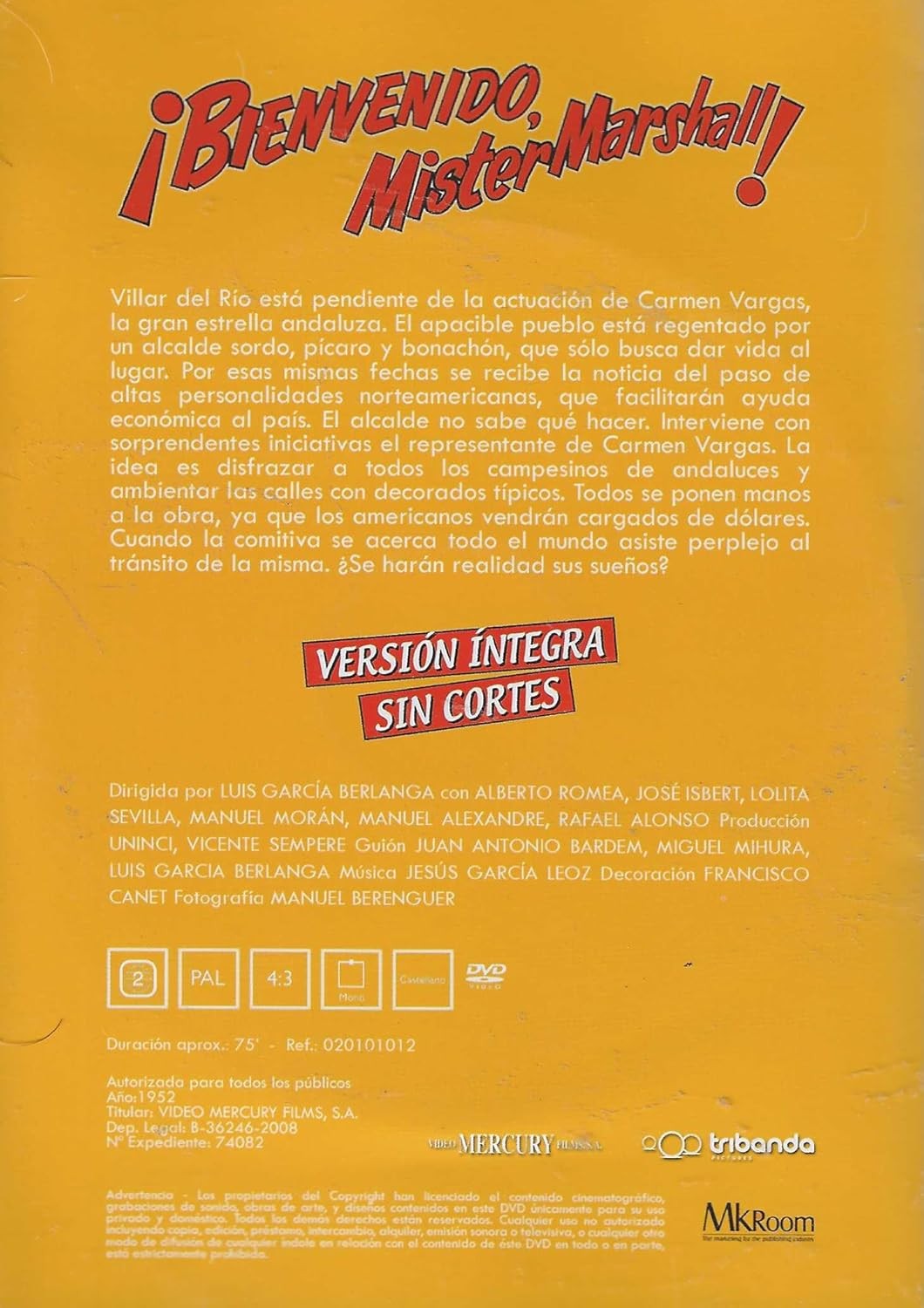 https://dvdstorespain.es/es/peliculas/128597-bienvenido-mister-marshall-dvd-edicion-sobre-dvd-2024--0634065165499.html128597Bienvenido, Míster Marshall (Edición Sobre) [DVD] (1953)Años 50. Villar del Río es un pequeño y tranquilo pueblo en el que nunca pasa nada. Sin embargo, el mismo día en que llegan la cantante folclórica Carmen Vargas y su representante, el alcalde (Pepe Isbert) recibe la noticia de la inminente visita de un comité del Plan Marshall (proyecto económico americano para la reconstrucción de Europa). La novedad provoca un gran revuelo entre la gente, que se dispone a ofrecer a los americanos un recibimiento muy especial. https://dvdstorespain.es/1115004-home_default/bienvenido-mister-marshall-dvd-edicion-sobre-dvd-2024-.jpg4.9587instock4.95874.9587002025-12-27T06:49:12+0100/Inicio/Inicio/DVD/Inicio/Películas/Inicio/Nuevos