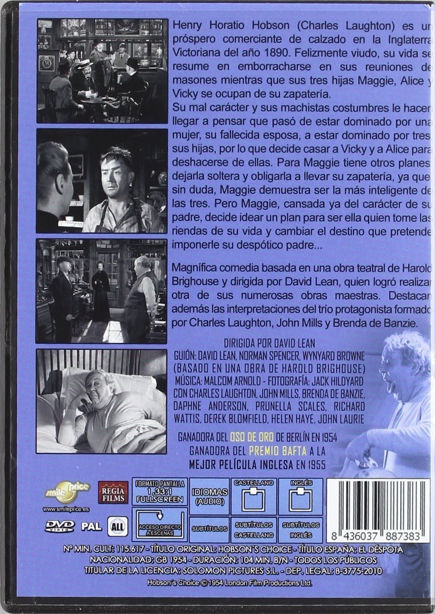 https://dvdstorespain.es/es/peliculas/19056-el-despota-dvd--8436037887383.html19056El Déspota [DVD] (1954) Hobson'S Choice<div id="productDescription" class="a-section a-spacing-small"> <!-- show up to 2 reviews by default --><br /><p> <span>Henry Horatio Hobson (Charles Laughton) es un próspero comerciante de calzado en la Inglaterra Victoriana del año 1890. Felizmente viudo, su vida se resume en emborracharse en sus reuniones de masones mientras que sus tres hijas Maggie, Alice y Vicky se ocupan de su zapatería. Su mal carácter y sus machistas costumbres le hacen llegar a pensar que pasó de estar dominado por una mujer, su fallecida esposa, a estar dominado por tres, sus hijas, por lo que decide casar a Vicky y a Alice para deshacerse de ellas. Para Maggie tiene otros planes: dejarla soltera y obligarla a llevar su zapatería, ya que, sin duda, Maggie demuestra ser la más inteligente de las tres. Pero Maggie, cansada ya del carácter de su padre, decide idear un plan para ser ella quien tome las riendas de su vida y cambiar el destino que pretende imponerle su despótico padre...Magnífica comedia basada en una obra teatral de Harold Brighouse y dirigida por David Lean, quien logró realizar otra de sus numerosas obras maestras. Destacan además las interpretaciones del trío protagonista formado por Charles Laughton, John Mills y Brenda de Banzie. Ganadora del Oso de Oro de Berín en 1954 y Ganadora del Premio BAFTA a la Mejor Película Inglesa en 1955.</span> </p> </div>https://dvdstorespain.es/671474-home_default/el-despota-dvd-.jpg5.2066instock5.20665.2066002015-09-17T23:43:20+0200/Inicio/Inicio/DVD/Inicio/Películas/Inicio/Nuevos