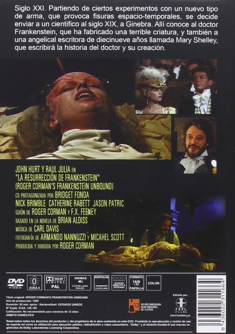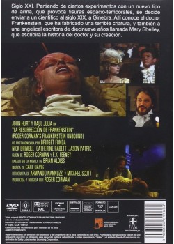 - La Resurrección de Frankenstein Después de ciertos experimentos con un nuevo tipo de arma, que provoca fisuras espacio-temporales, se decide enviar a un científico al siglo XIX. Allí conoce al doctor Frankenstein.