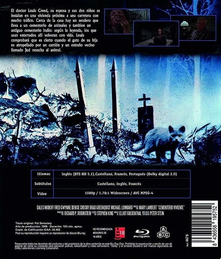 https://dvdstorespain.es/es/peliculas/35787-cementerio-viviente-bd-1989-pet-sematary-blu-ray--8436558195752.html35787Cementerio Viviente [Blu-ray] (1989) Pet SemataryEl doctor Louis Creed, su esposa y sus dos niños se instalan en una vivienda próxima a una carretera con mucho tráfico. Cerca de la casa hay un sendero que lleva a un cementerio de animales y también a un antiguo cementerio indio; según la leyenda, los que sean enterrados allí volverán a la vida. Louis comprobará que es cierto cuando el gato de su hija es atropellado por un camión y un extraño vecino llamado Jud resucita al pequeño animal.https://dvdstorespain.es/518765-home_default/cementerio-viviente-bd-1989-pet-sematary-blu-ray-.jpg4.686instockResearch Entertainment6.69424.68629.9991037017122.00832017-07-22T21:00:53+0200/Inicio/Inicio/Blu-ray/Inicio/Películas/Inicio/Nuevos/Inicio/18 AÑOS SI D&O/Inicio/REBAJAS DE HALLOWEN/Inicio/REBAJAS DE HALLOWEN/-30%