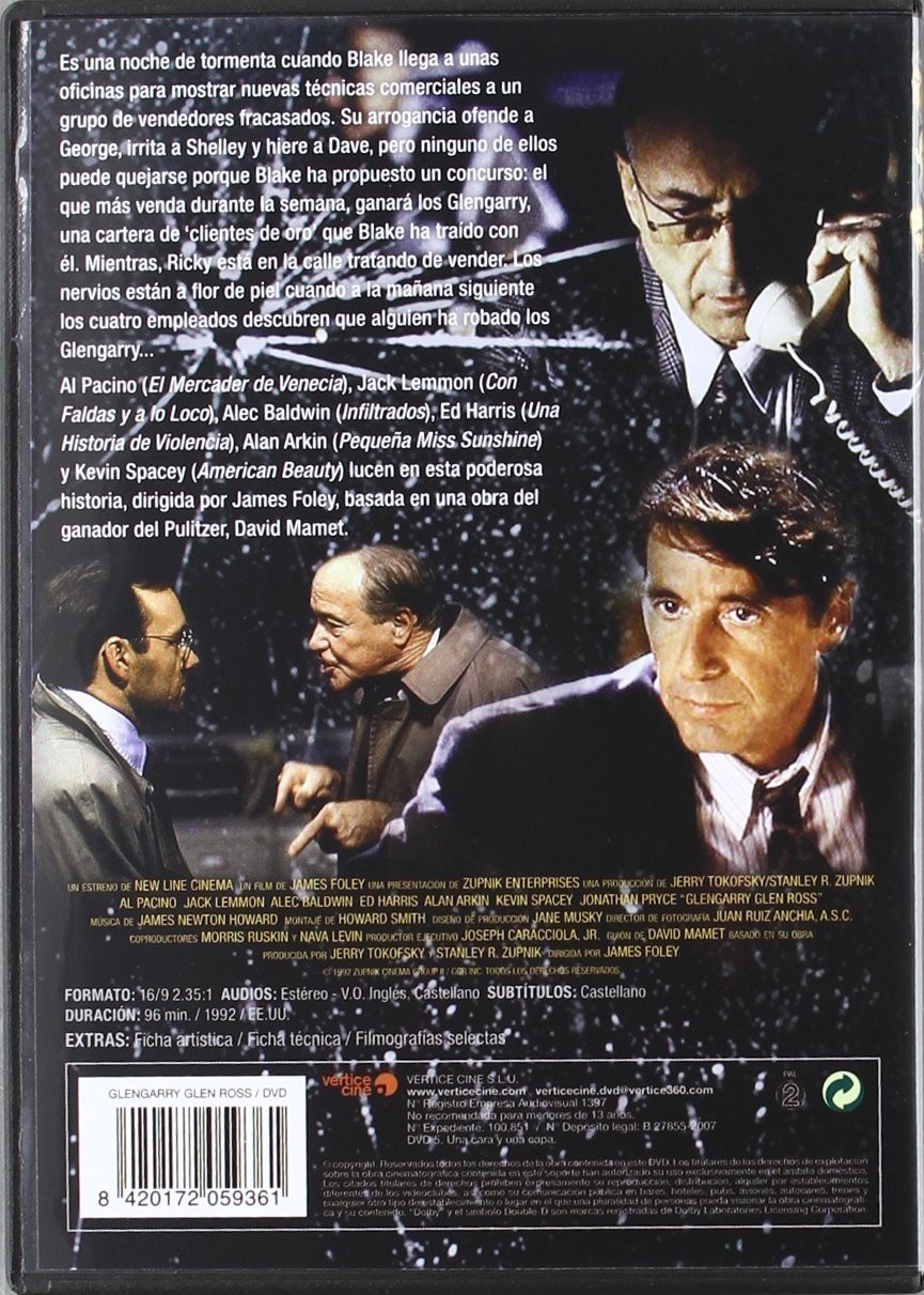 La cruda historia de unos comerciales dispuestos a todo por vender y mantener su puesto de trabajo. Espléndida adaptación cinematográfica de la obra de David Mamet, ganadora d eun Pulitzer. Edición especial 2 discos con la película remasterizada, numerosos extras y una presentación de lujo.