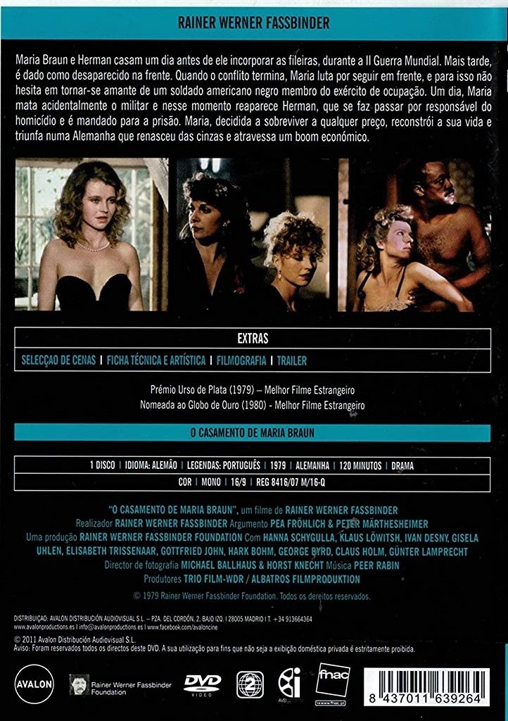 https://dvdstorespain.es/es/peliculas/54903-o-casaento-de-maria-braun-dvd-aleman-subt-portugues-dvd--8437011639264.html54903O Casaento De Maria Braun [DVD] (1979) Die Ehe der Maria BraunMaria y Hermann Braun se casan durante un bombardeo, poco antes de que él sea enviado al frente ruso. Al final de la guerra, Hermann figura en las listas de desaparecidos. En la ciudad, entre las ruinas, reina el mercado negro y la prostitución. También Maria, para poder sobrevivir, debe prostituirse. Así se hace amante de Bill, un soldado negro norteamericano, del que queda embarazada. Pero su marido reaparece....https://dvdstorespain.es/1076674-home_default/o-casaento-de-maria-braun-dvd-aleman-subt-portugues-dvd-.jpg5.1694instockResearch Entertainment5.16945.1694002020-04-05T15:55:04+0200/Inicio/Inicio/Películas/Inicio/Nuevos/Inicio/VELADA SP 70/Inicio/VELADA DE 100/Inicio/VELADA FR 100/Inicio/VELADA IT 100